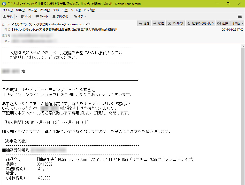 今日、メールの整理をしていたら、こんなメールが来ていました。