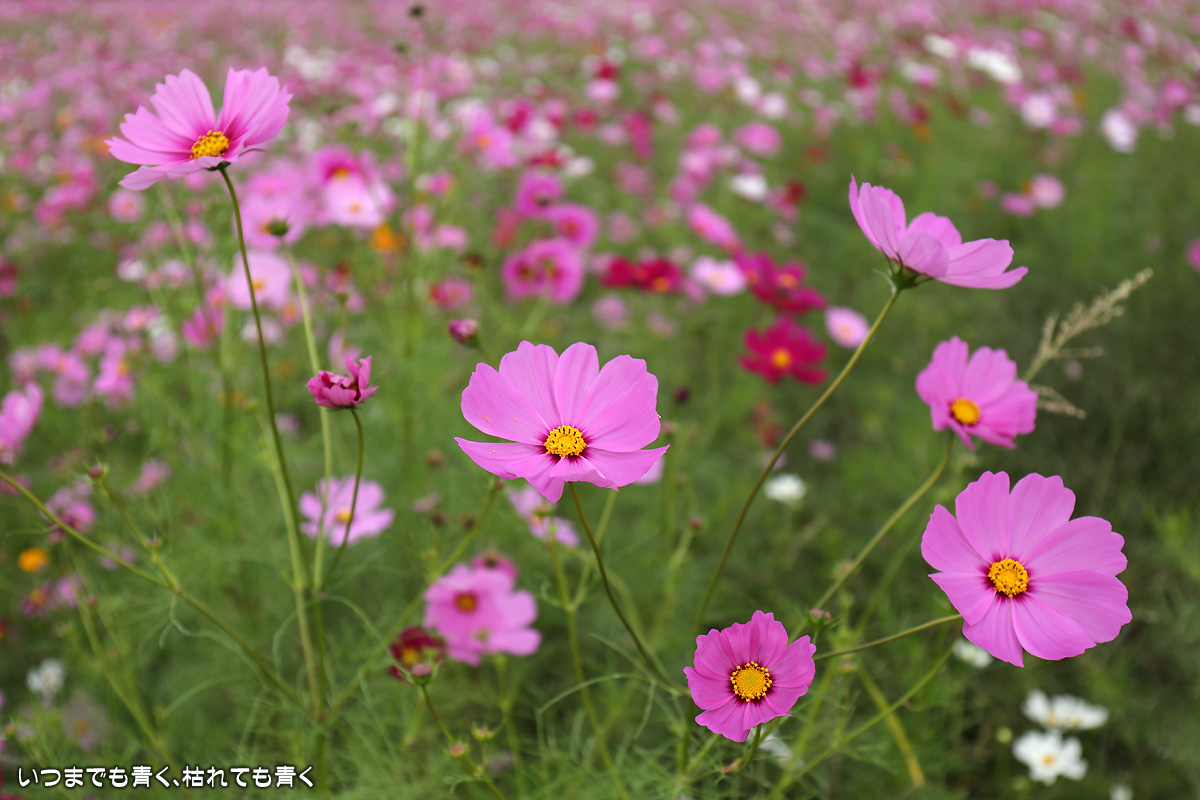 千足町のコスモス畑、ふたたび ぶらりひとり旅 2016年10月23日(日) 19:24 二週間前に訪れた時は、咲いている花が少なくてこれからという感じでしたが、今日は満開で色鮮やかな美しいコスモス畑になっていました。ただ、今日も風が強くて写真撮影には適さなかったのが残念でした。なお、昨夜落とした機材が心配だったので、今日重点的に使ってみましたが、まったく問題ありませんでした。