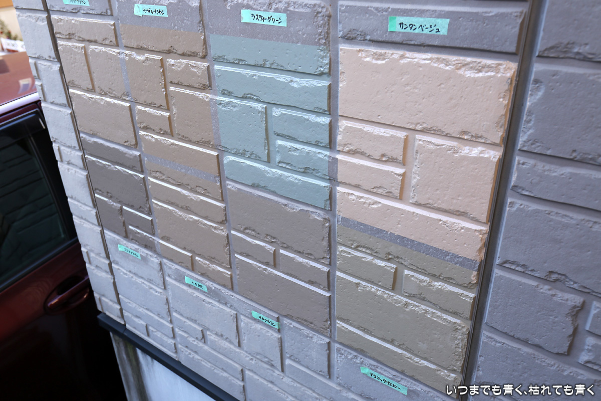 だけど、家の塗装色がなかなか決まらない。選んだいくつかのサンプル色を外壁に塗ってもらったのだけど、小さなサンプルでは全体のイメージがつかめない。以前は模型を作ってプラ塗料を塗って検討したのだけど、今回はそんな気力がないのでパソコンでやっているのだけど、簡単に色が変えられるので遊んでしまって全然イメージが固まらない。