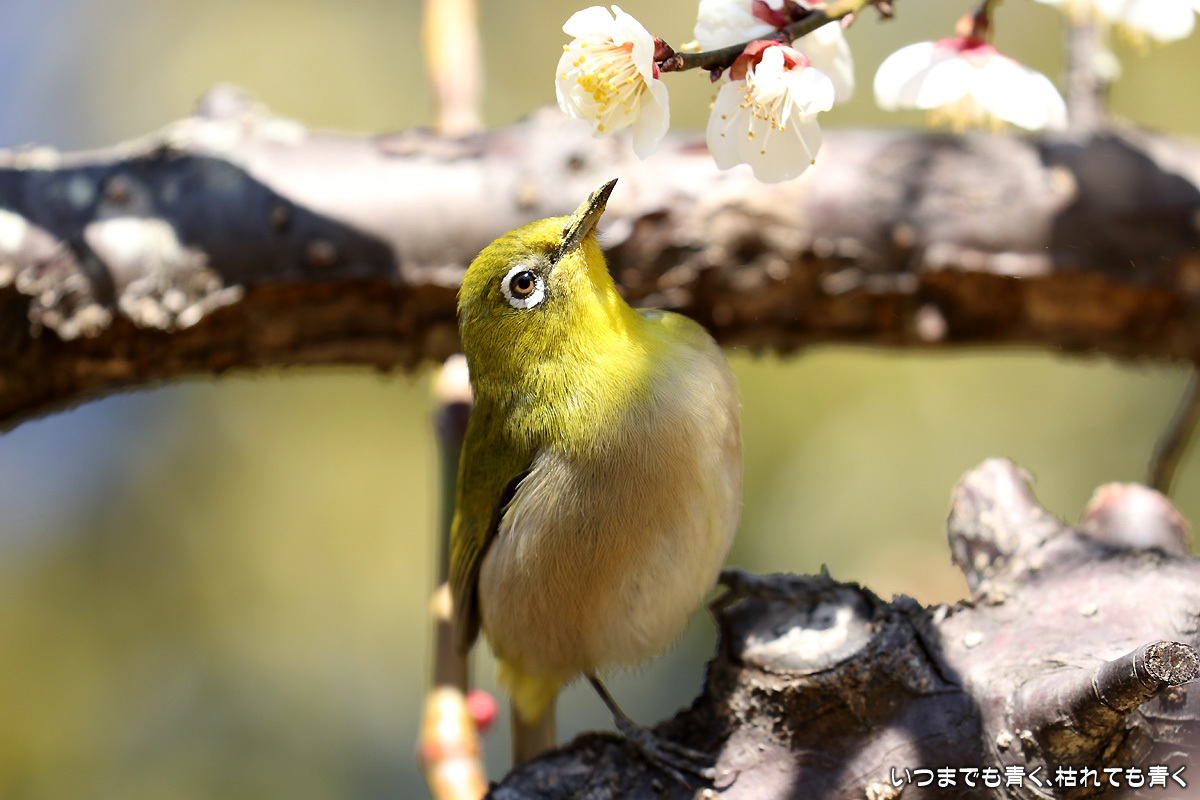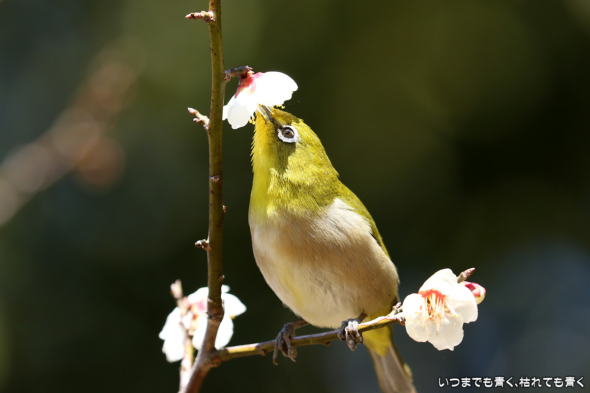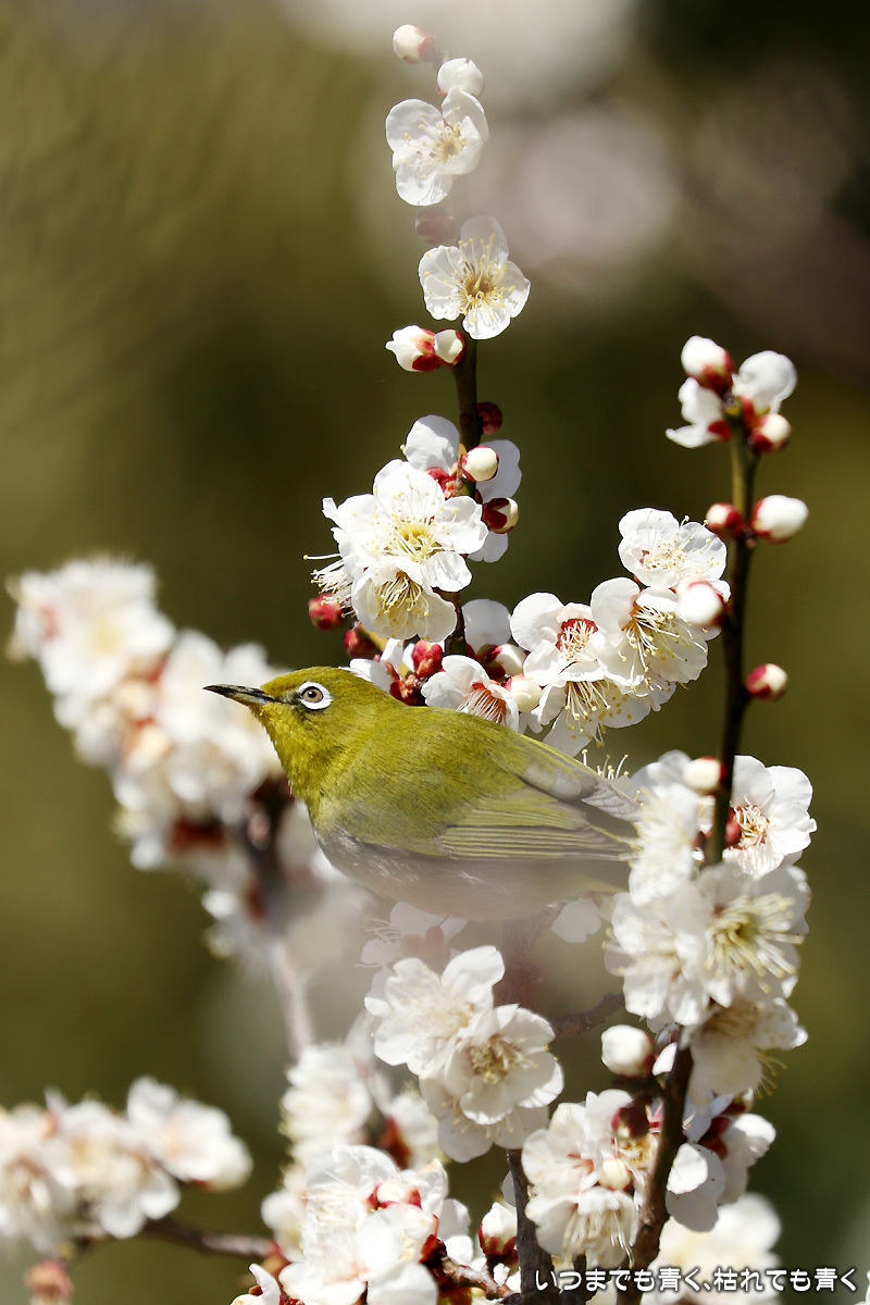 梅はまだつぼみが多いけど、今年初めてメジロと遊ぶことができた。
