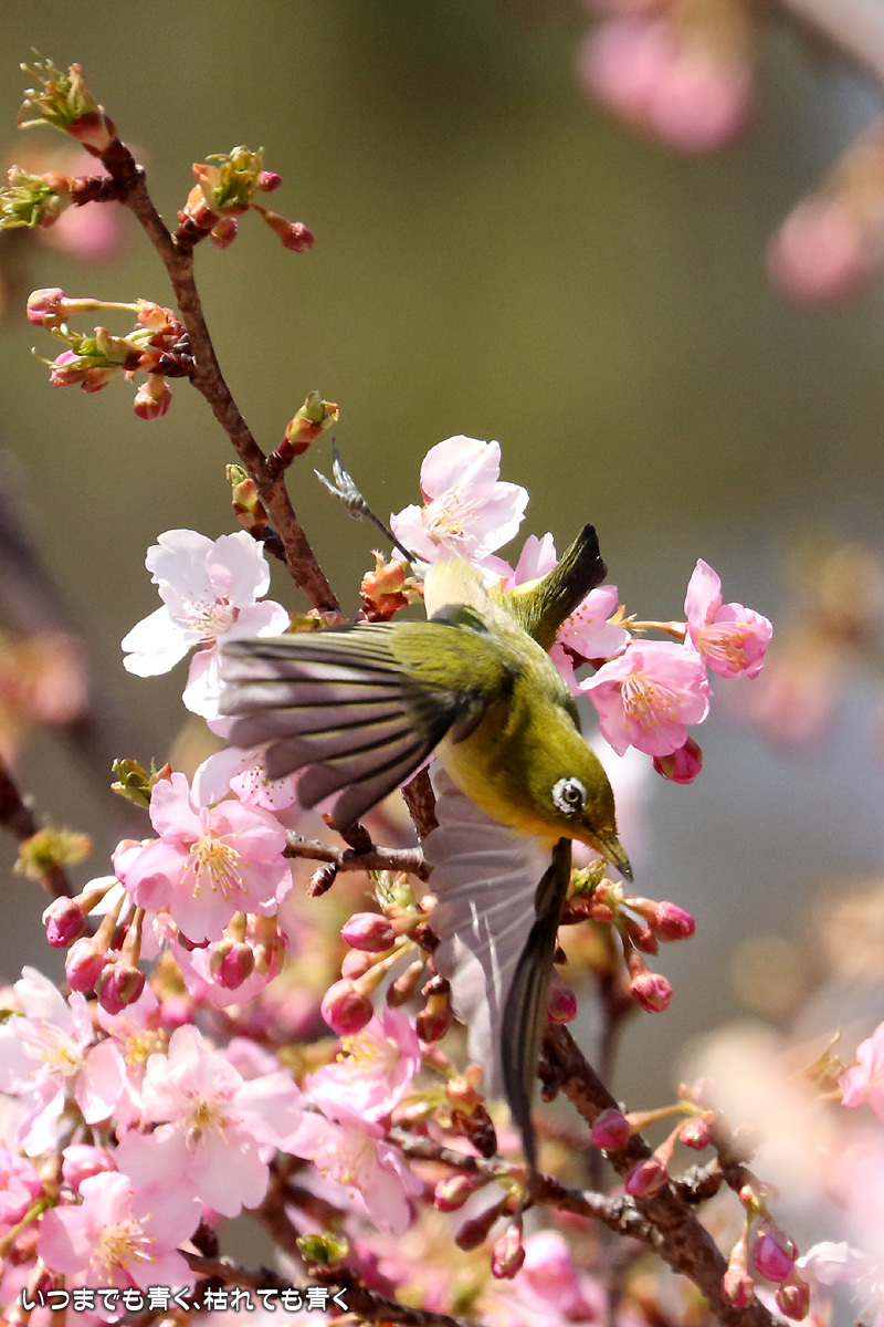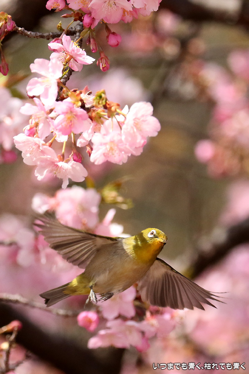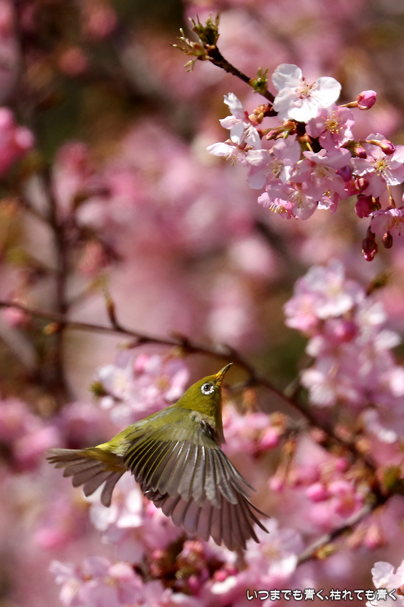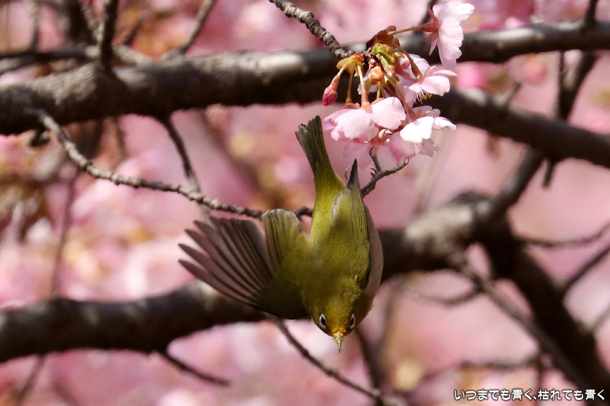 河津桜の中を舞うメジロたち ぶらりひとり旅 2017年3月13日(月) 22:50 昨日撮影してきた萬葉公園の河津桜に集うメジロたち。 まずは、翼を広げる瞬間を狙った写真。 動きが機敏なので瞬間をとらえるのは難しい。 河津桜は華やかで美しいけど、ちょっとうるさくてメジロが埋もれてしまう。 個人的には、メジロには梅の花が似合うと思う。