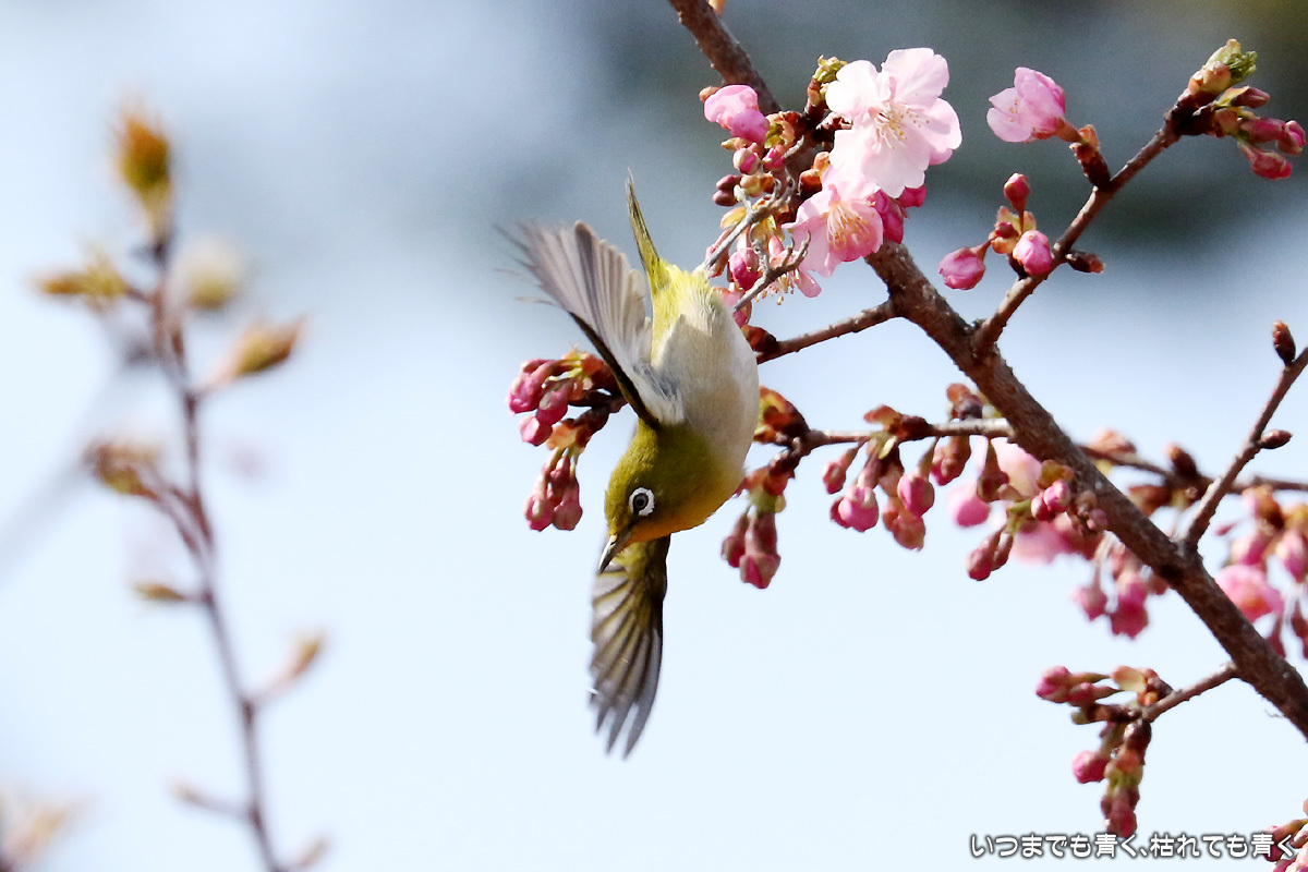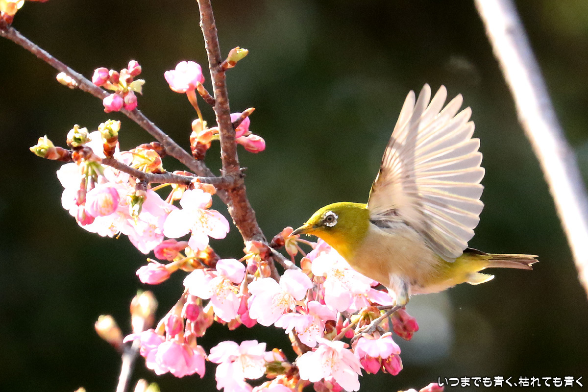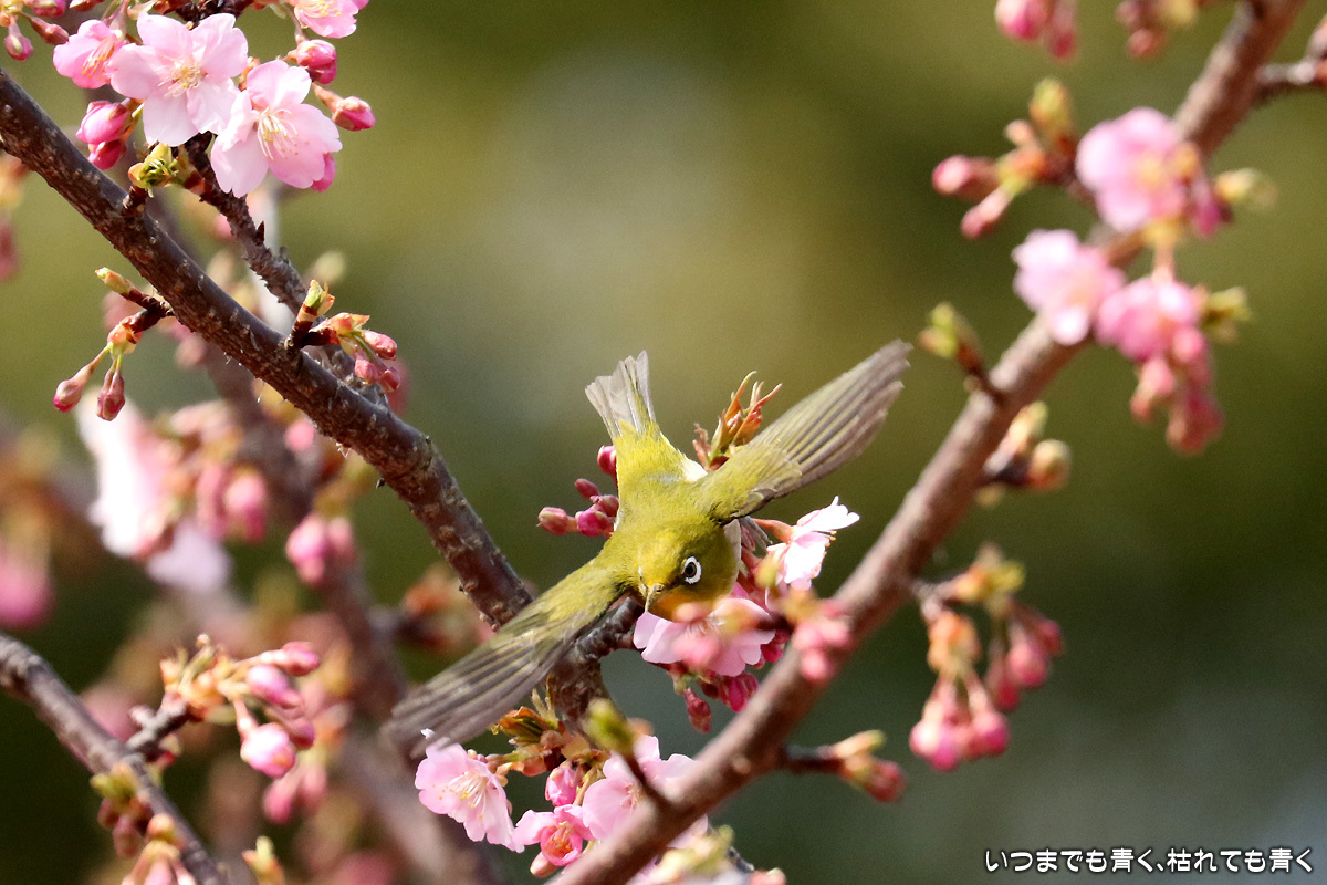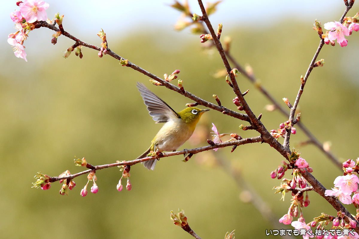 河津桜の中を舞うメジロたち ぶらりひとり旅 2017年3月13日(月) 22:50 昨日撮影してきた萬葉公園の河津桜に集うメジロたち。 まずは、翼を広げる瞬間を狙った写真。 動きが機敏なので瞬間をとらえるのは難しい。 河津桜は華やかで美しいけど、ちょっとうるさくてメジロが埋もれてしまう。 個人的には、メジロには梅の花が似合うと思う。