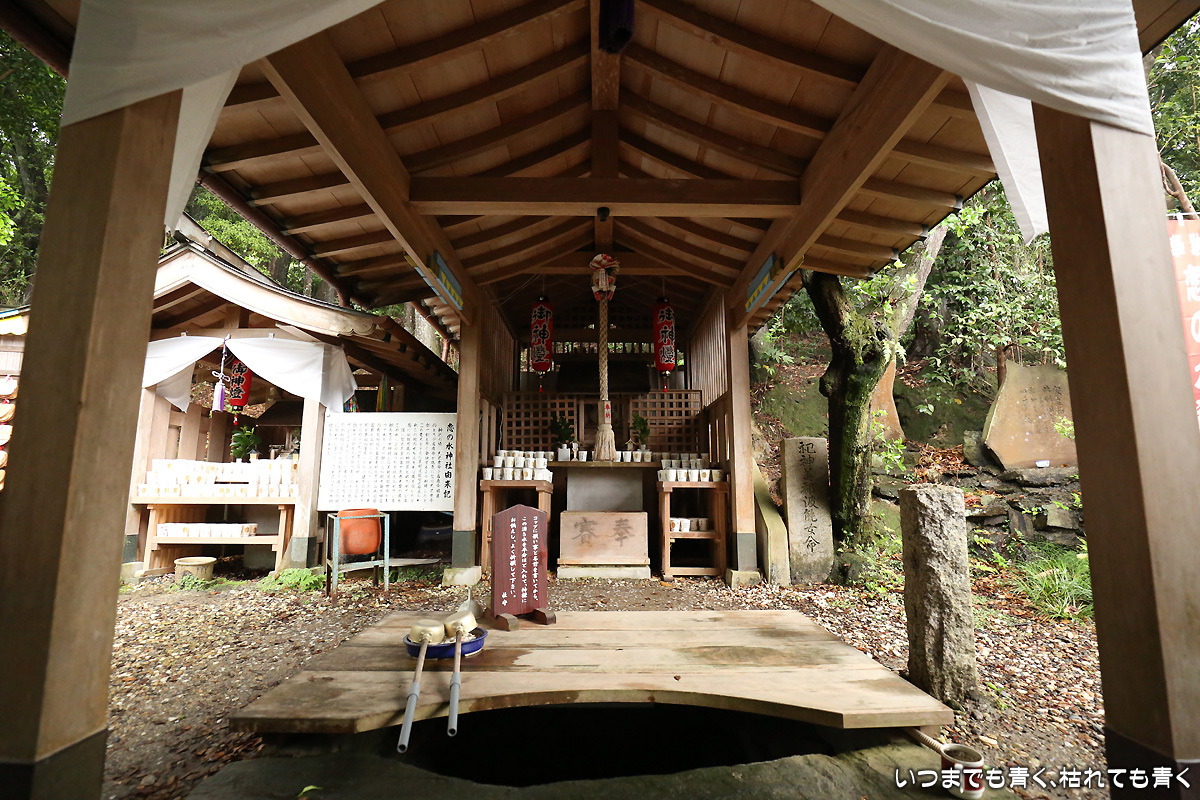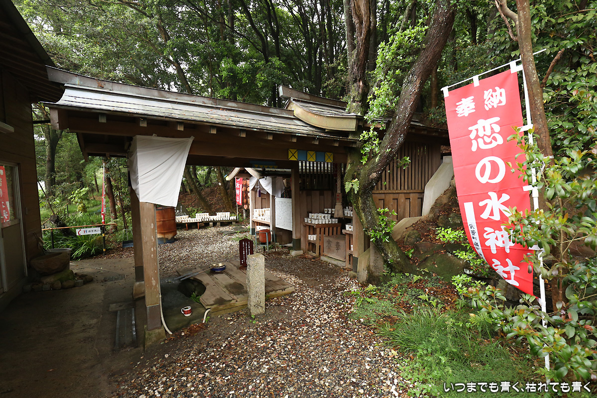 「ハマ♡コイ、美浜で恋してみませんか?」という幟はためく、美浜町にある「恋の水神社」。