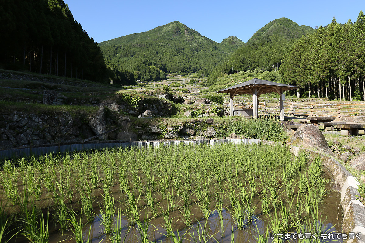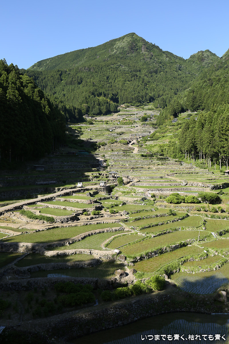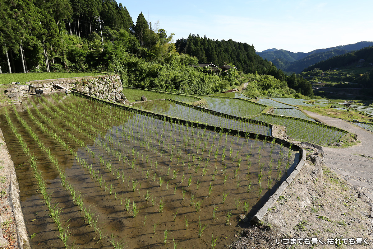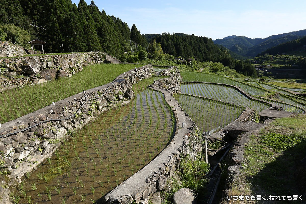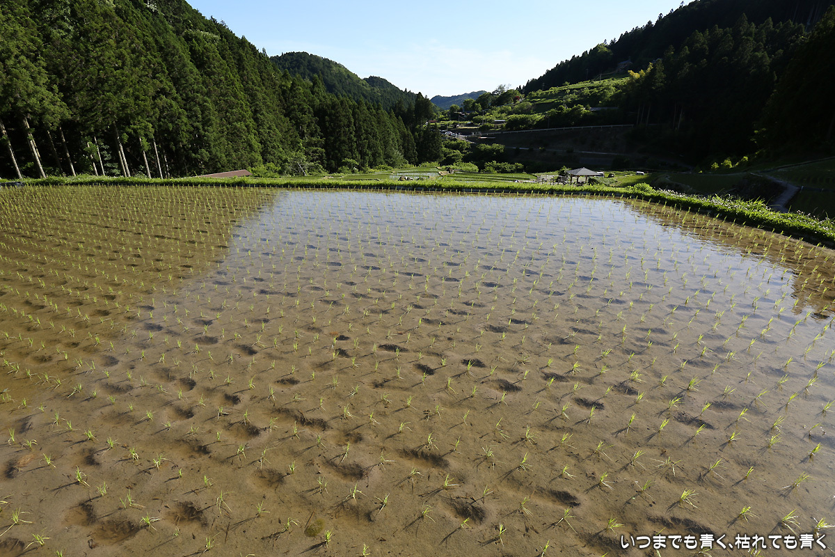 田植え後の四谷千枚田 ぶらりひとり旅 2017年6月4日(日) 23:37 四谷千枚田。 田植えの終わった水田に、青空が映り込んだらきれいだろうなと思って見に来たけど、 すでに太陽は傾き半分は陰に。 しかも、青空が映り込むのは難しそう。 秋の方が風情があるかも。 でも、良き日本の風景だ。 癒されたかん?→Yes. 百姓にあいさつ出来たかん?→I could not be sorry.