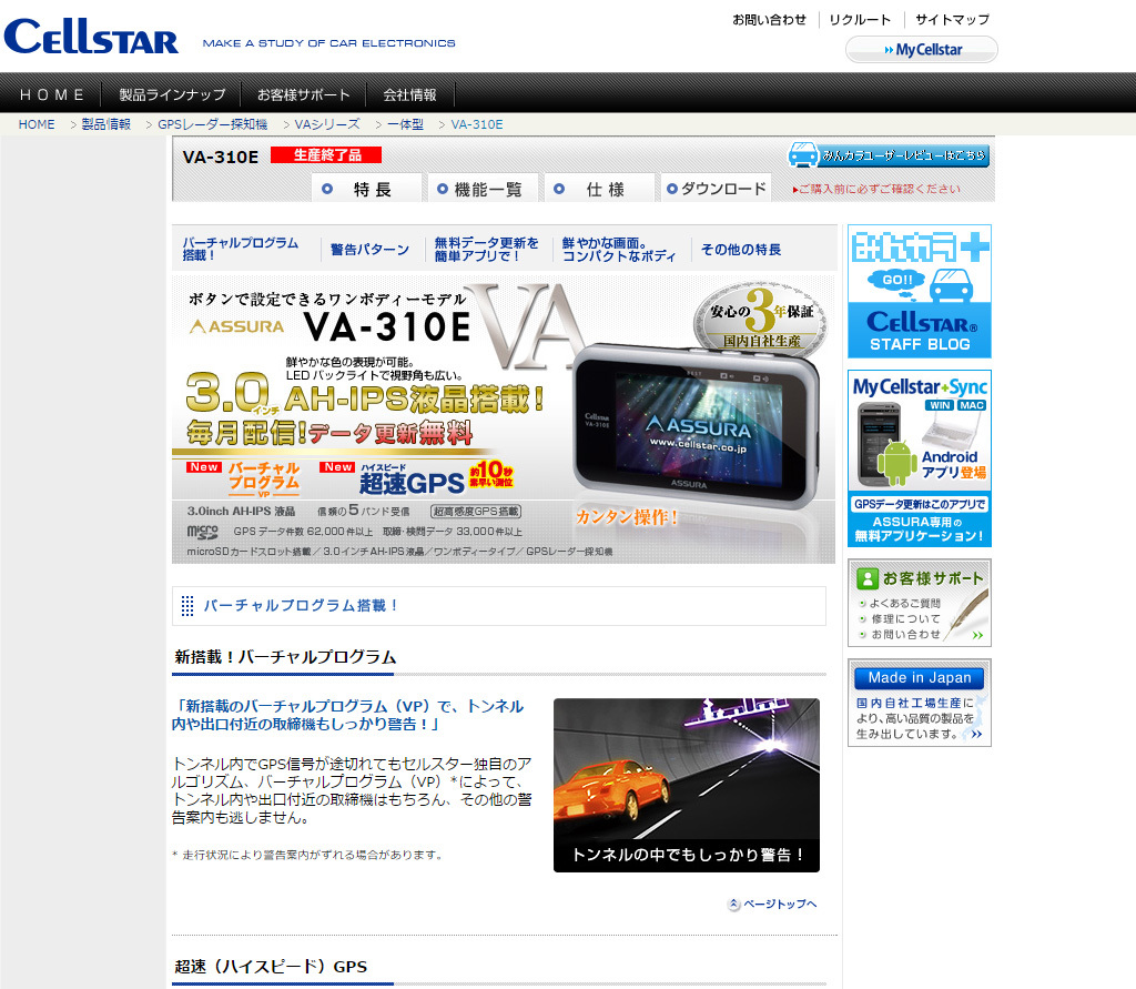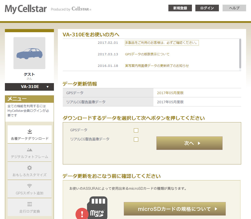 GPSデータの更新 クルマの話 2017年6月5日(月) 23:59 私の車に取り付けているGPSレーダー探知機は、2011年8月24日発売のセルスターVA-310Eという機種。6年前の機種で高価なものでもないのに、いまだにGPSデータとリアルCG警告画像データを無料で提供してくれている。ナビの地図が3年しか無料更新してくれないのに比べると、素晴らしい対応ですねぇ。