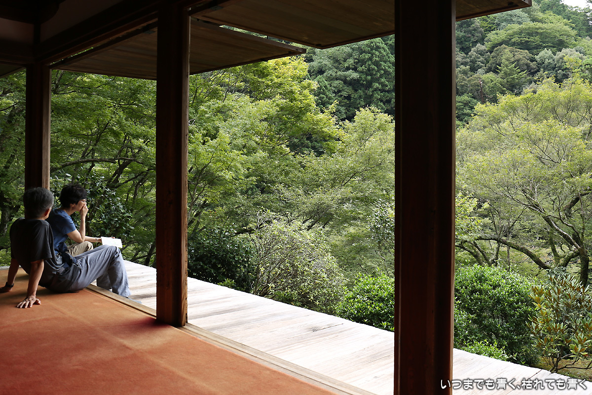 石水院で山の緑を眺めて畳に座っていると、とても贅沢なひと時を過ごしているよう。