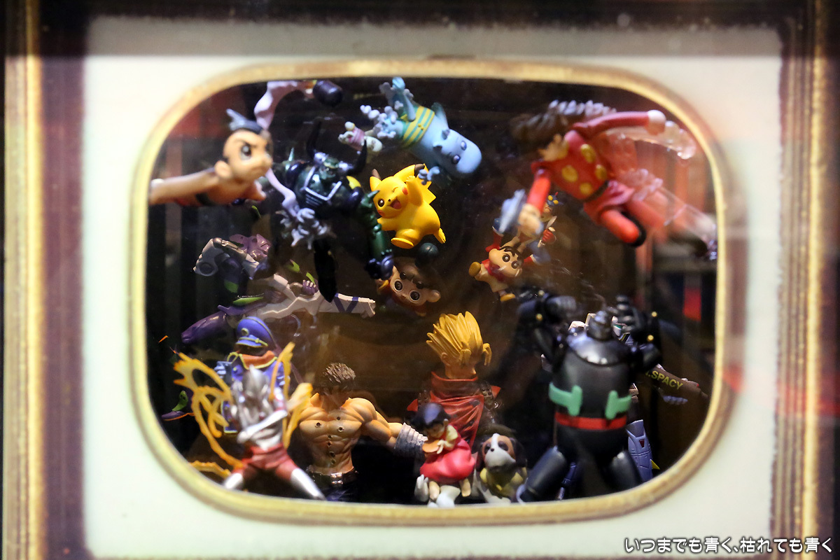 持っているフィギュア、集めていてもコンプリートできなかったフィギュア、初めて見るフィギュア、いろいろと目にすることができた。全体的に暗かったり、スポットライトが邪魔だったり、ガラスケースの映り込みが気になったりとか、きれいな写真を撮るのはなかなか難しかったが、写真撮影OKであることがありがたいので贅沢は言えない。