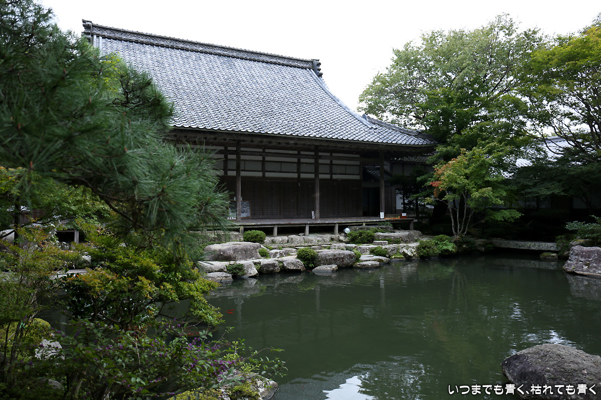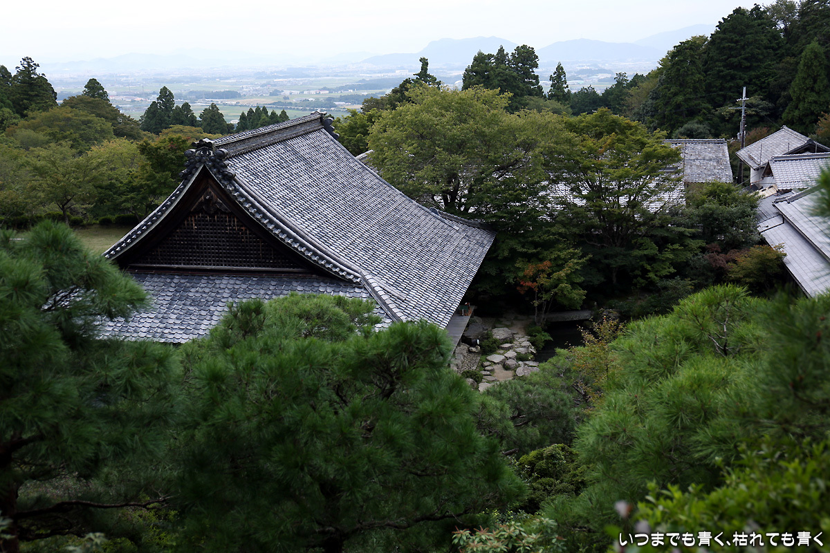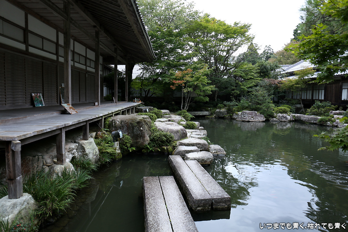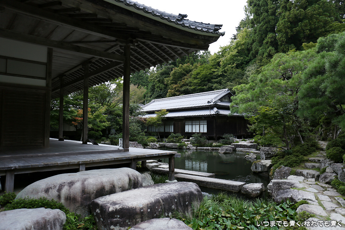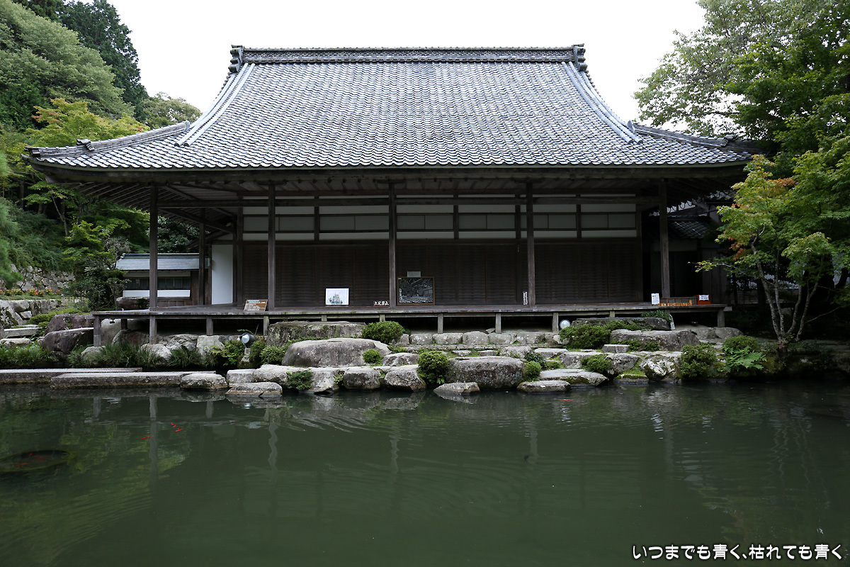 「先に御朱印帳をおあずけください」ということが書いてあったので、御朱印の受付に行くと、「もう拝観の受付は終わったので参拝はできませんが、御朱印だけでもかまいませんか?」と聞かれた。私は、「参拝していなくても、御朱印をいただけるのなら、それはありがたいことです。よろしくお願いします。」と答えて、雑談を始めた。愛知県から来たこと、初めてきたこと、湖東三山をまわってきたことなど。そうすると、「御朱印をお待ちいただく間、庭園はかまいませんから見て行ってください。」とおっしゃってくださったので、ありがたく庭園だけ拝見して写真を撮ってきた。広くはないが、本坊を池を介して眺める風景は素敵。まわりの緑が紅葉になればより素晴らしい景色になりそう。