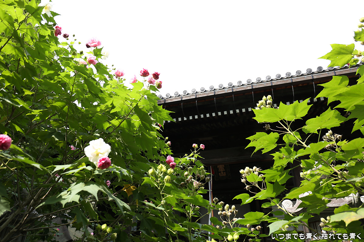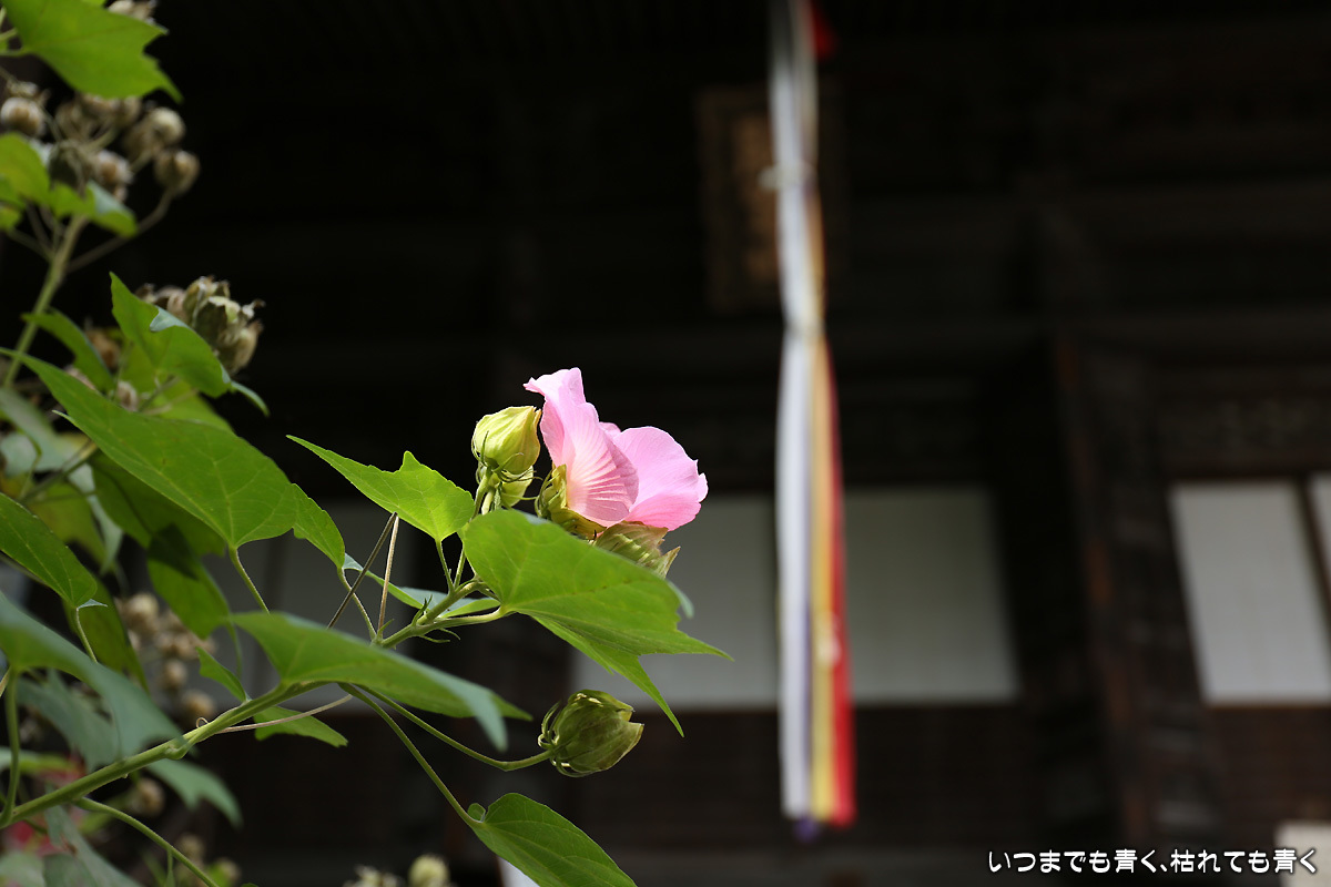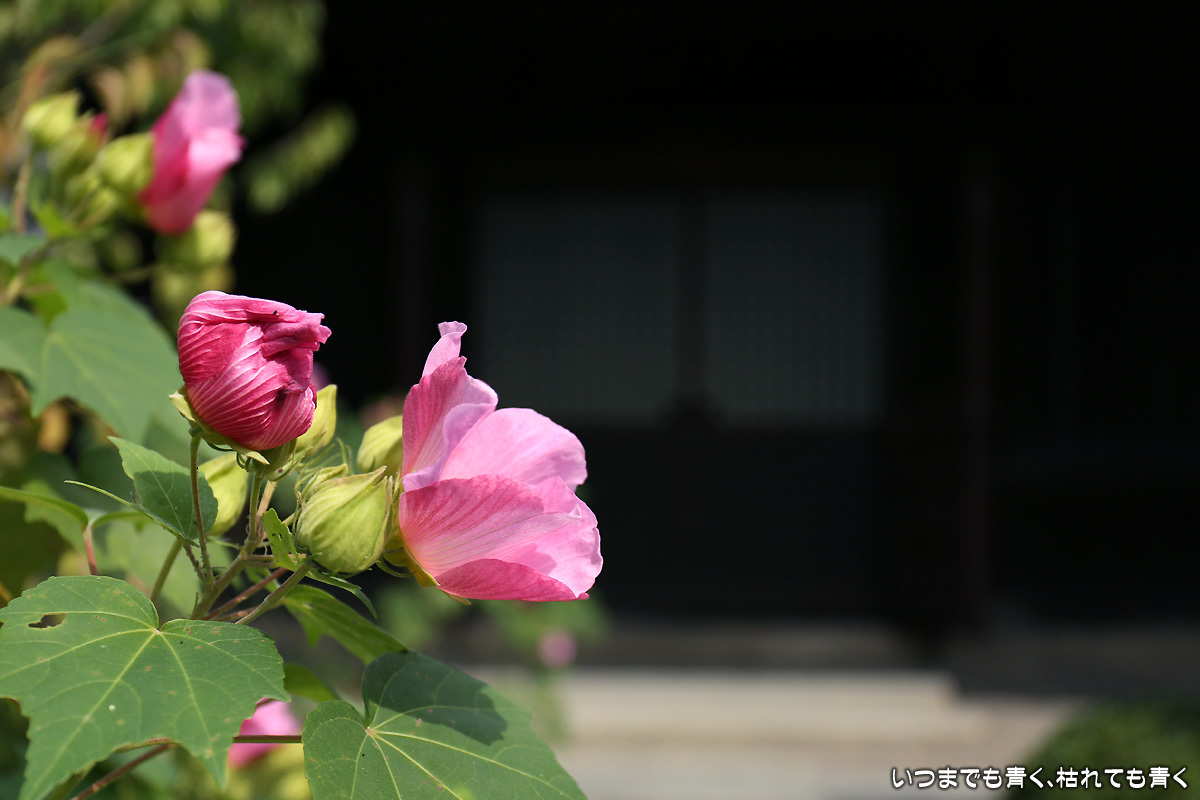「芙蓉の寺」と言われており、本殿のまわりにはたくさんの芙蓉が花を咲かそうとしている。