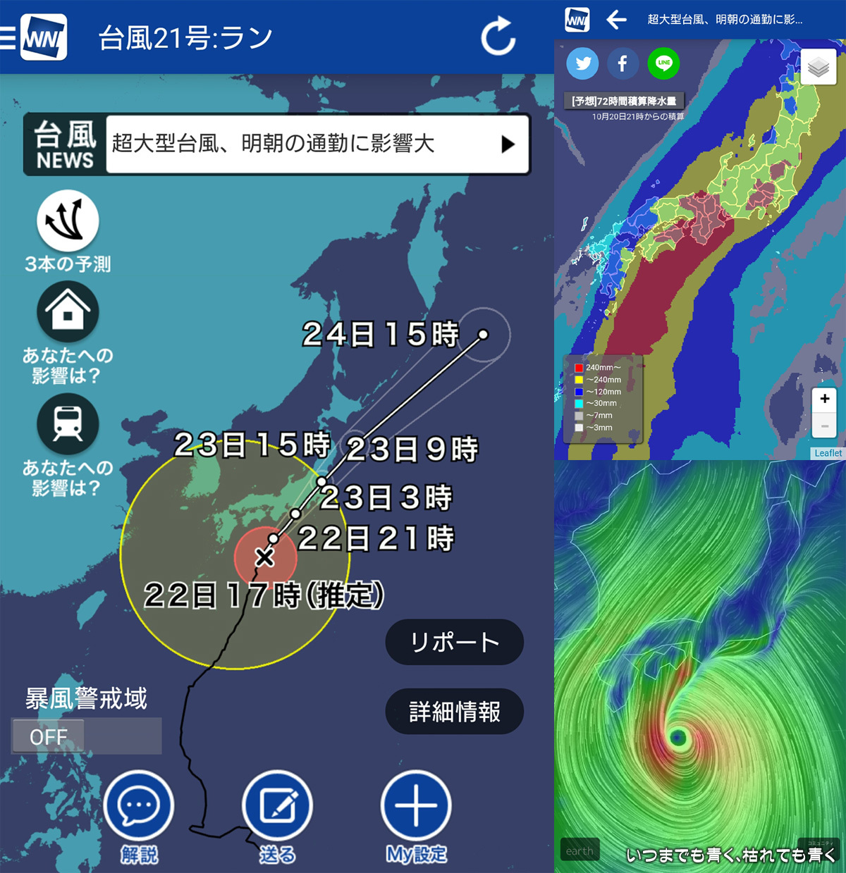 台風21号ラン 日記/出来事 2017年10月22日(日) 17:40 スーパータイフーン、台風21号ラン(嵐)。 しっかり備えて被害ゼロを祈っています。 【このエントリは、2017年12月31日に2017年10月22日付で掲載しました。】