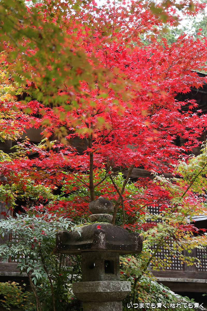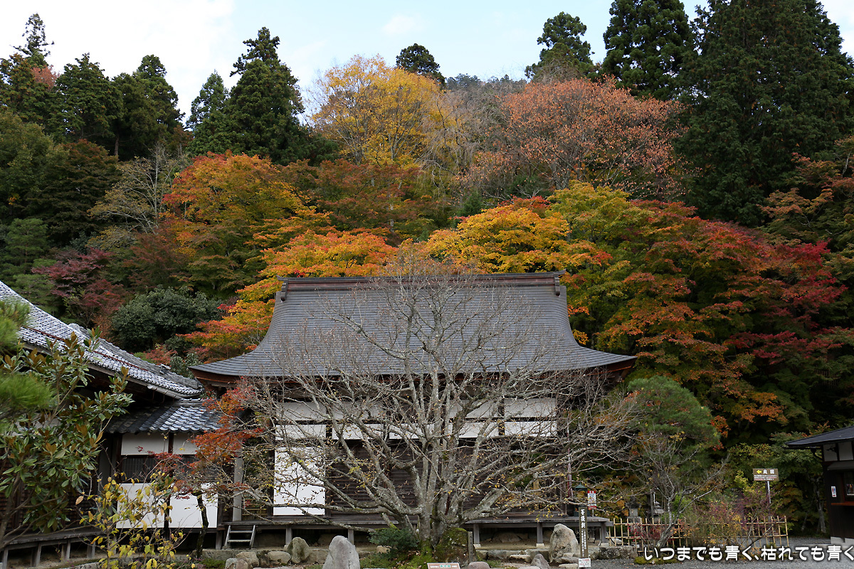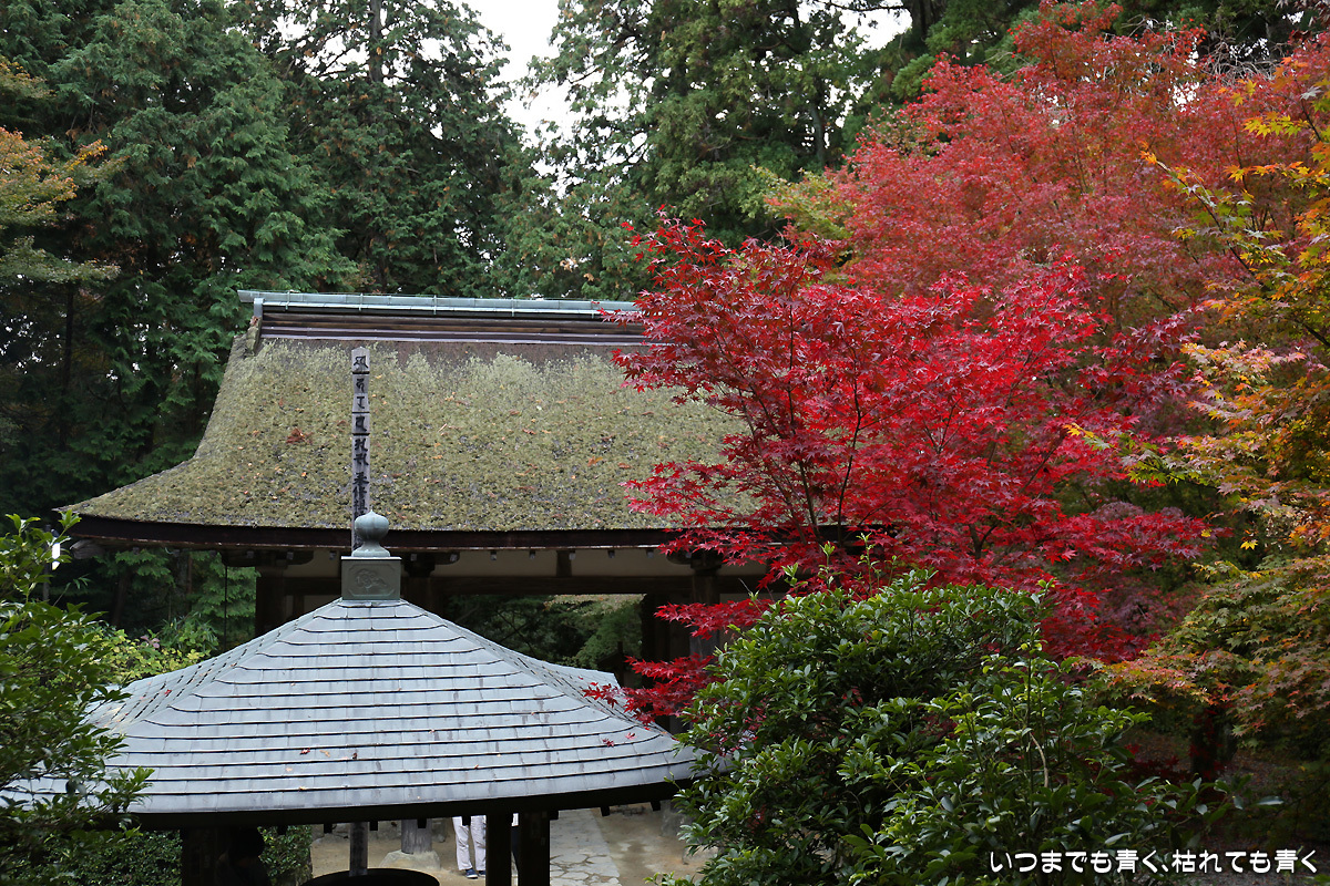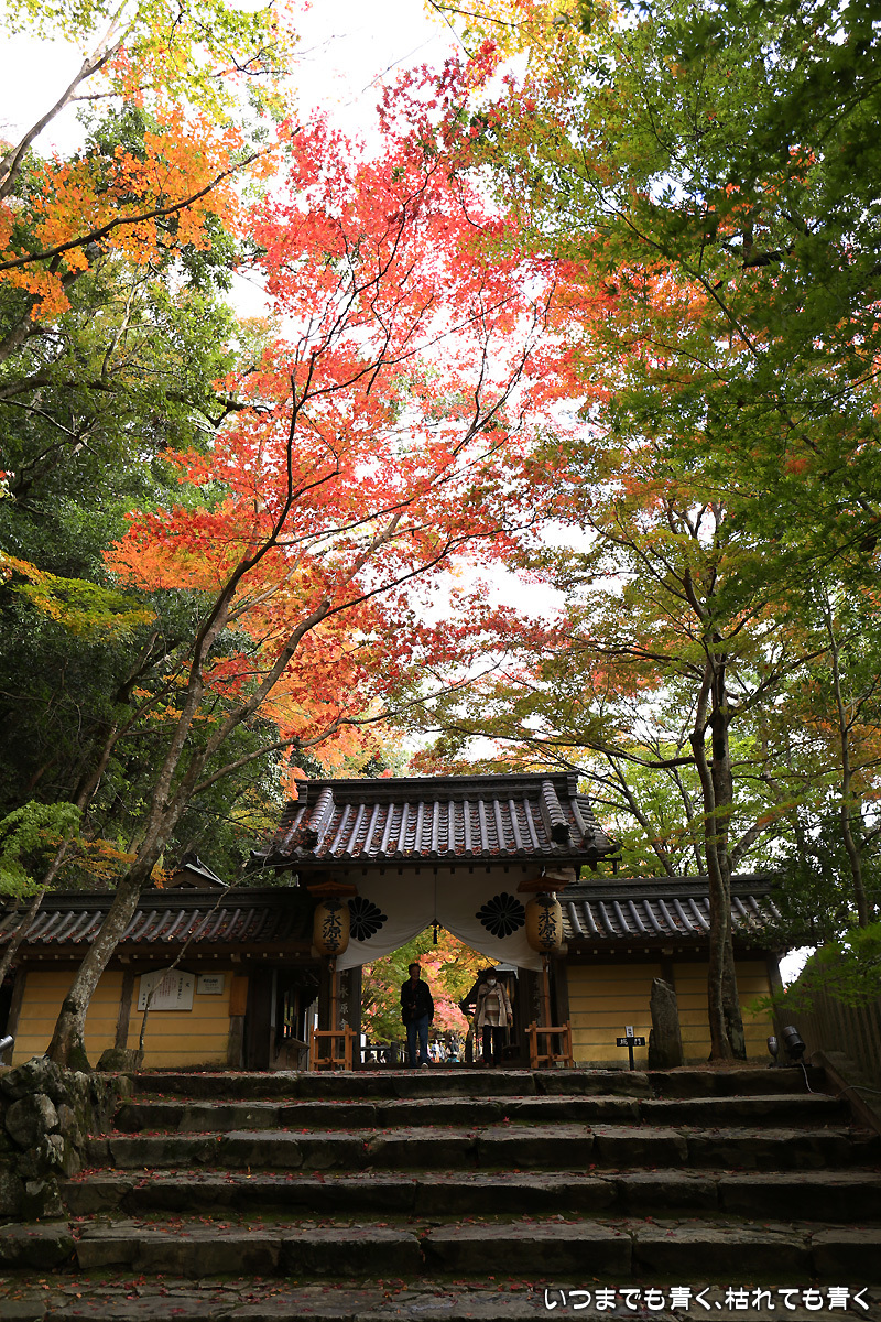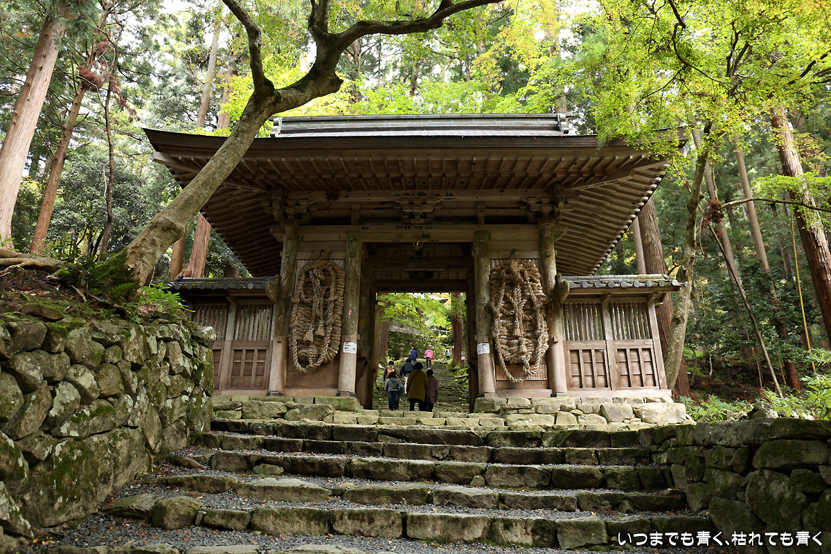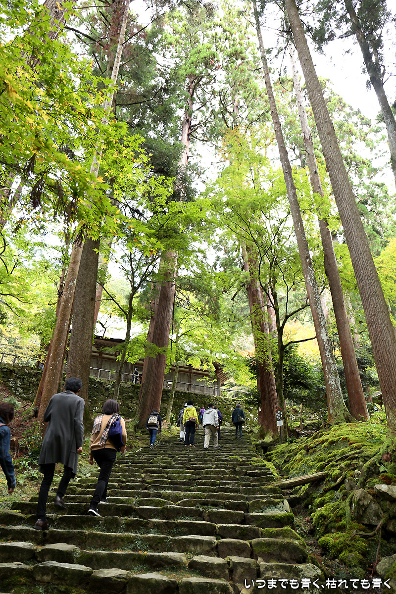 庭園は紅葉が進みつつあるが、本堂のまわりは青々としていて紅葉はまだ先。杉の木に囲まれた長い石段は、日常を忘れさせてくれて無心にさせてくれる。ここは映画「関ヶ原」のロケ地でもある。