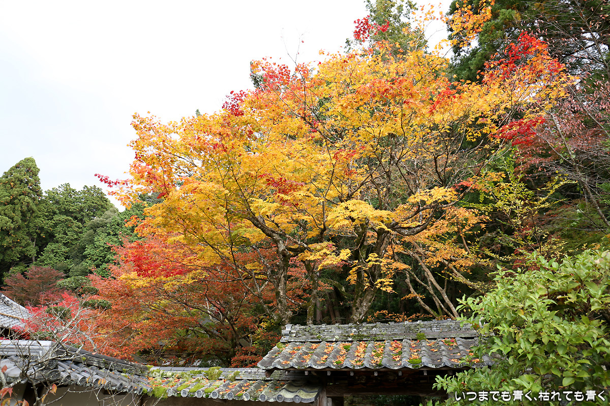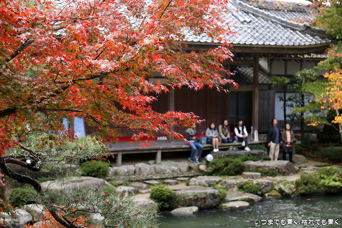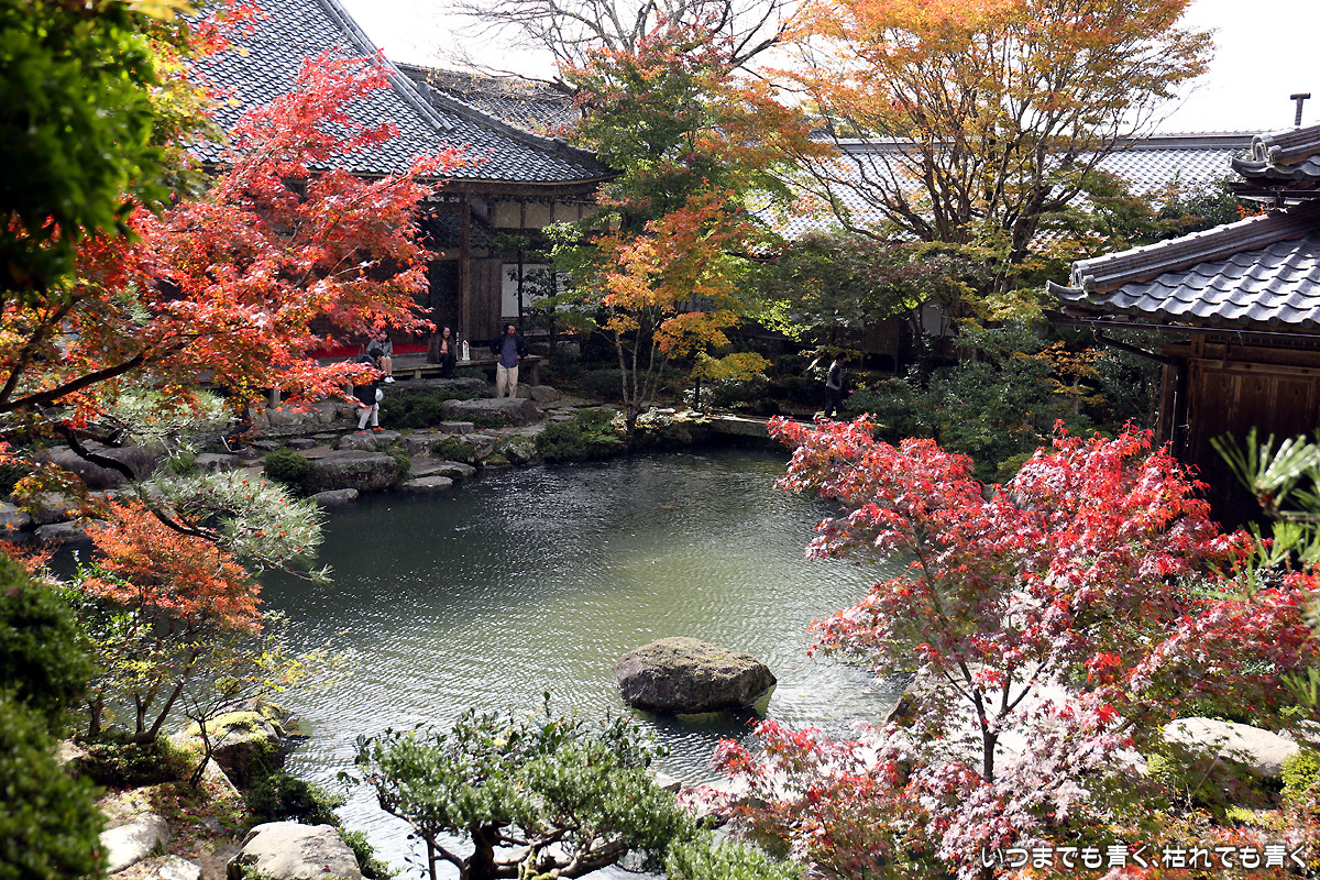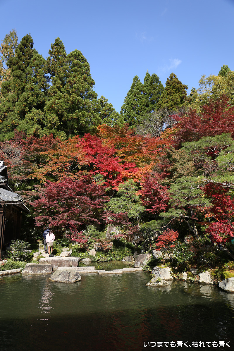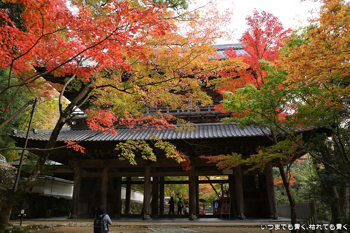 庭園は紅葉が進みつつあるが、本堂のまわりは青々としていて紅葉はまだ先。杉の木に囲まれた長い石段は、日常を忘れさせてくれて無心にさせてくれる。ここは映画「関ヶ原」のロケ地でもある。