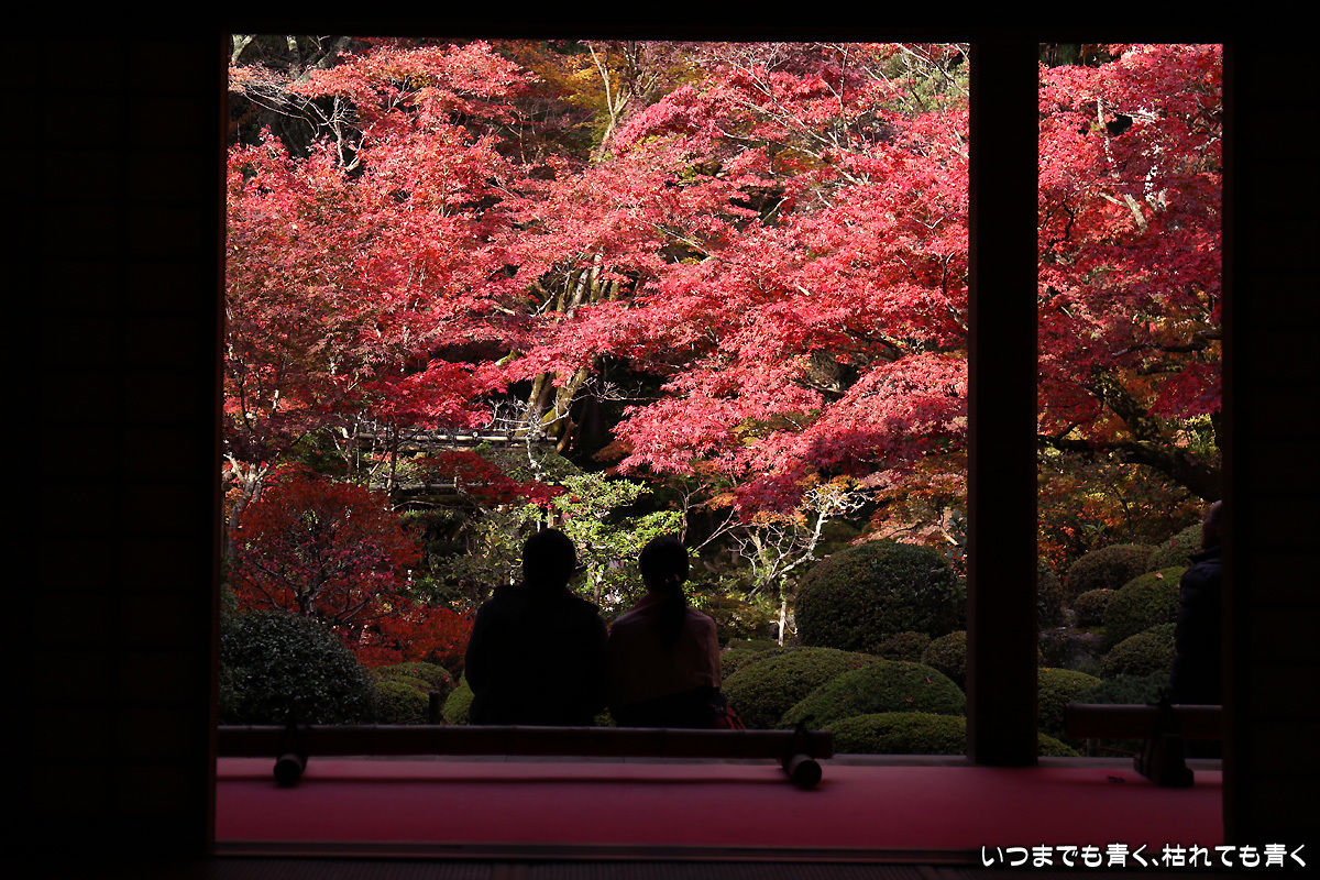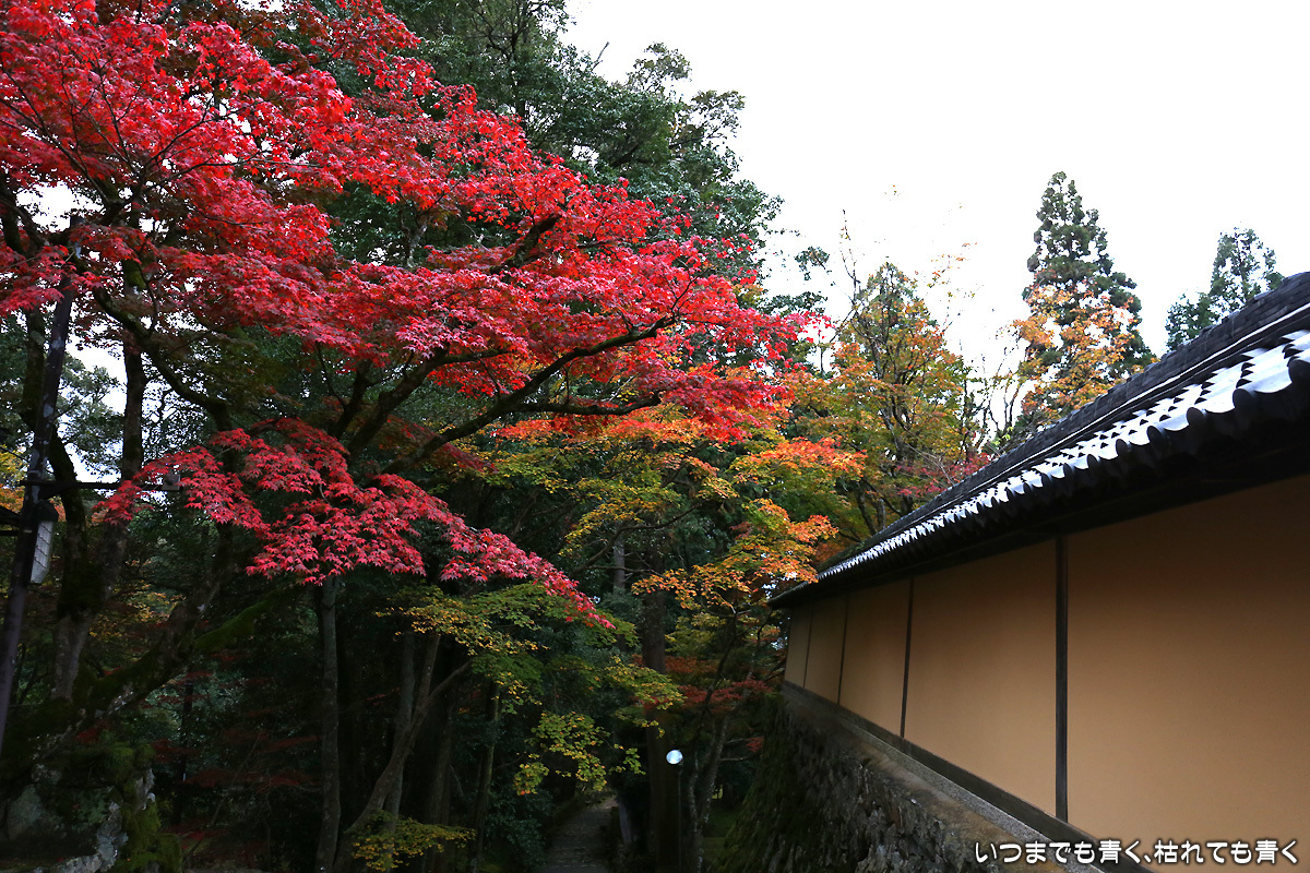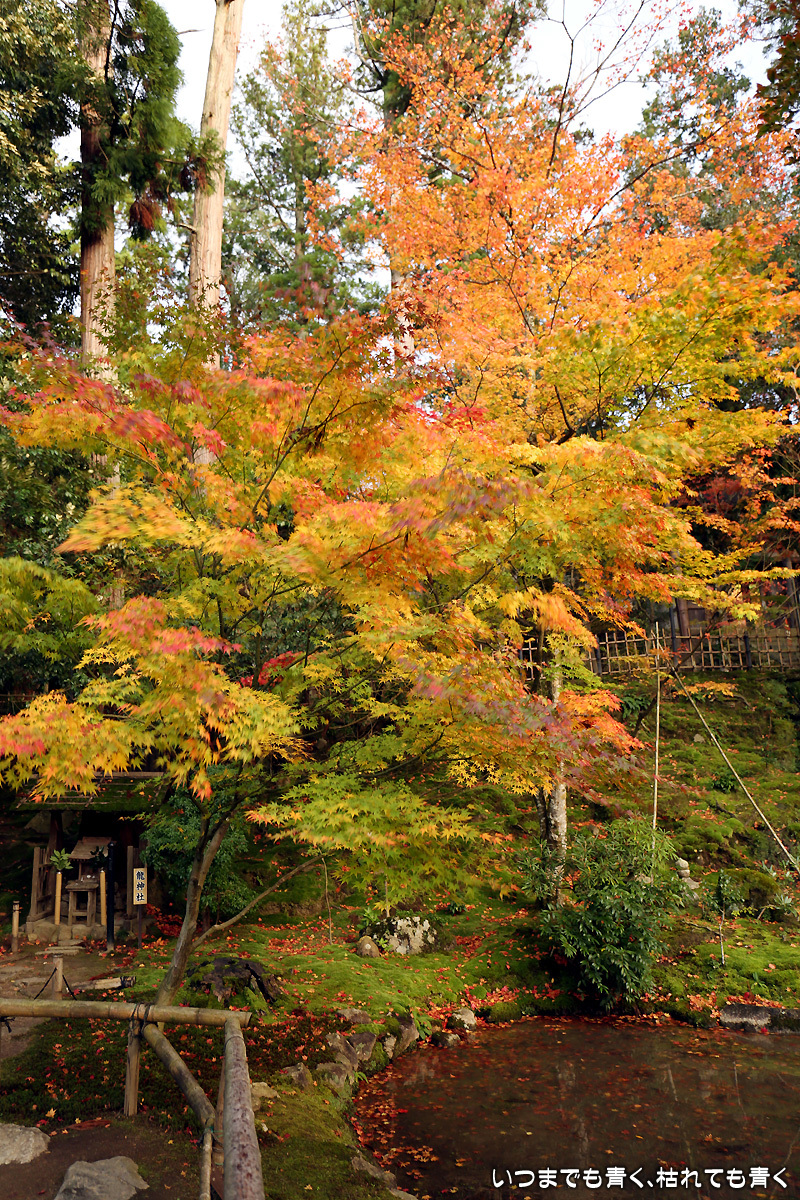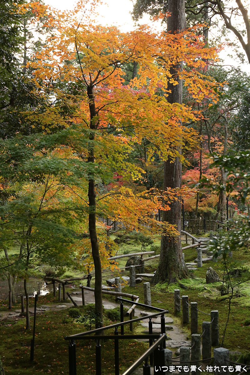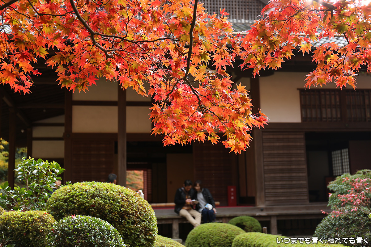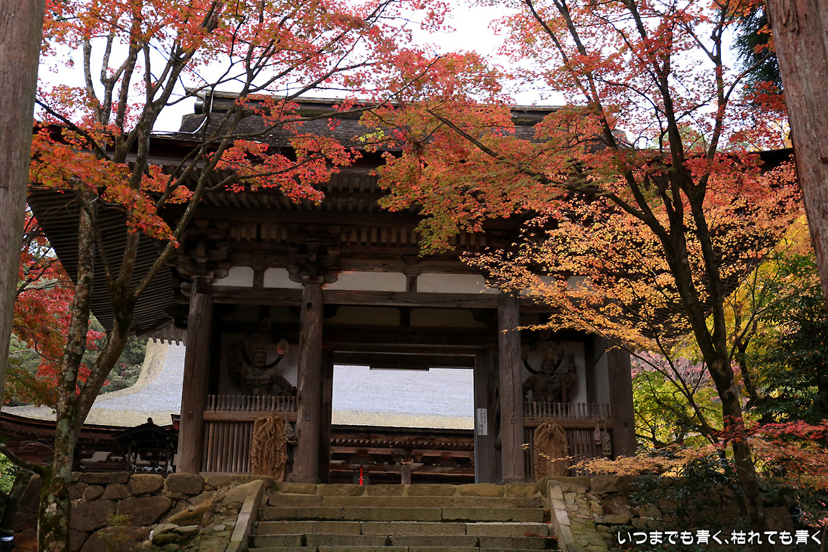 庭園は紅葉が進みつつあるが、本堂のまわりは青々としていて紅葉はまだ先。杉の木に囲まれた長い石段は、日常を忘れさせてくれて無心にさせてくれる。ここは映画「関ヶ原」のロケ地でもある。