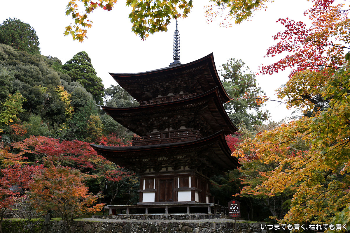 今日はその参道を軽快に登れた。紅葉は庭園が美しく色づいていたが、三重塔のまわりの紅葉はこれから。こういう場所は心落ち着く。