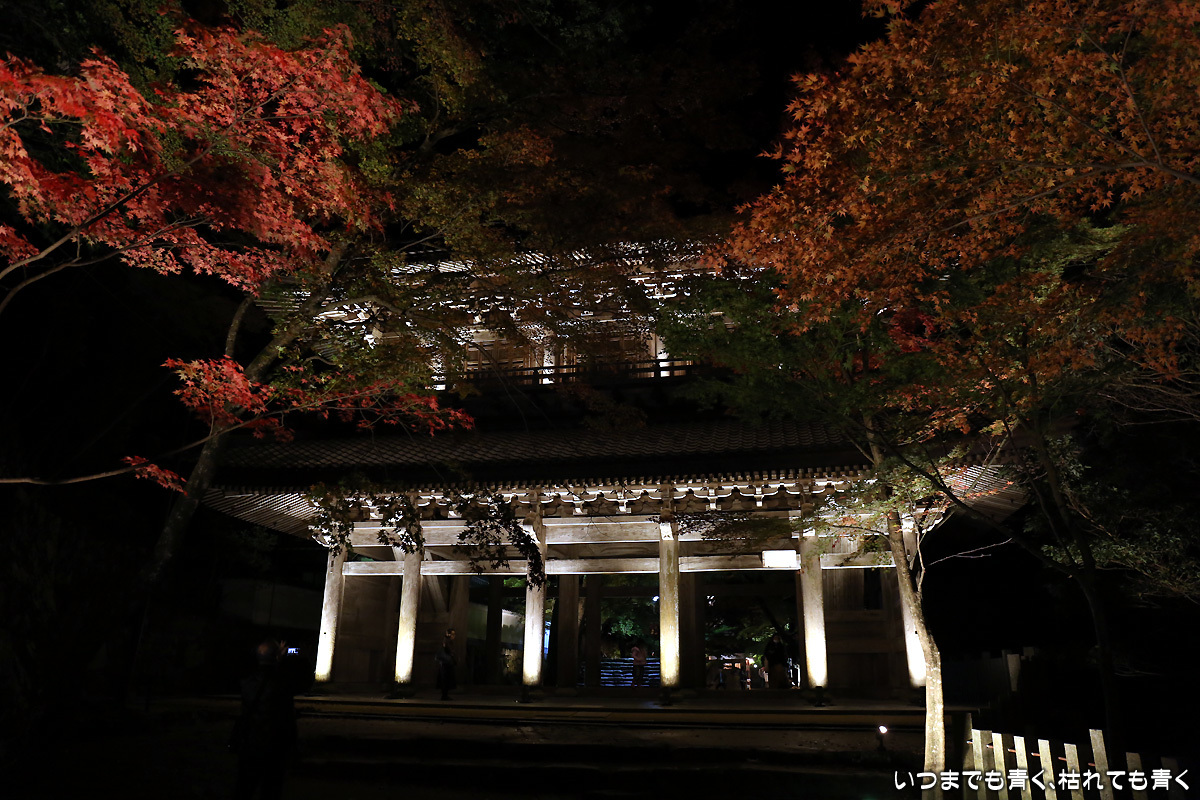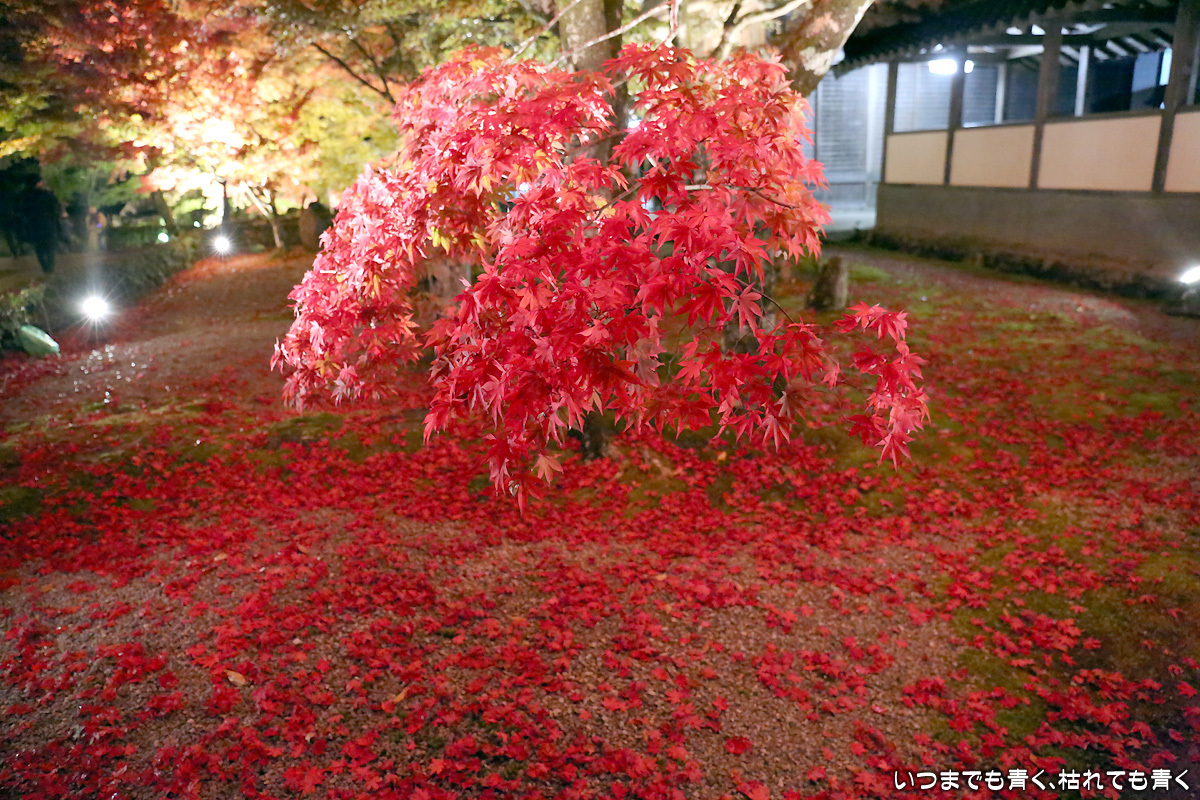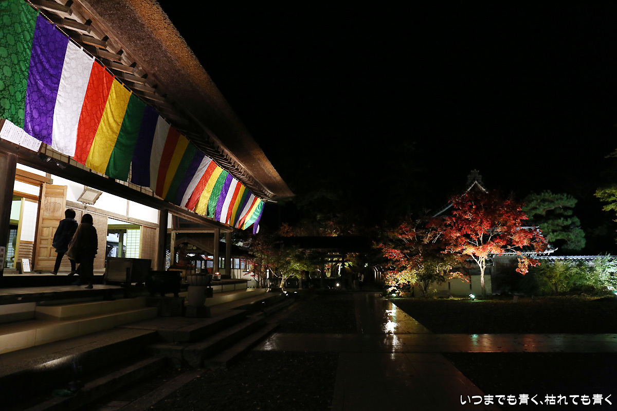 昼の拝観時のパンフレットがあれば、夜もそのまま入ることができて良心的。ライトアップは荘厳さがより増して心が高揚する。紅葉で高揚なんて言いたい訳じゃないけど。
