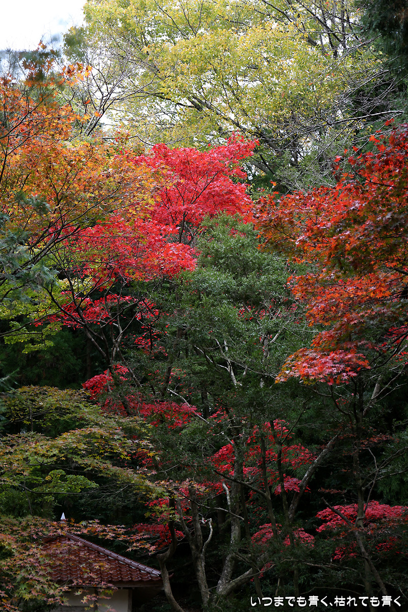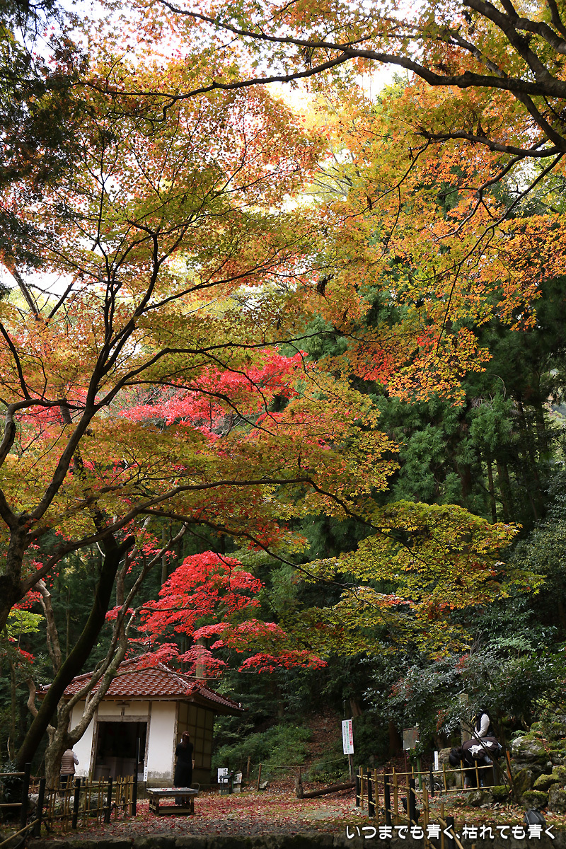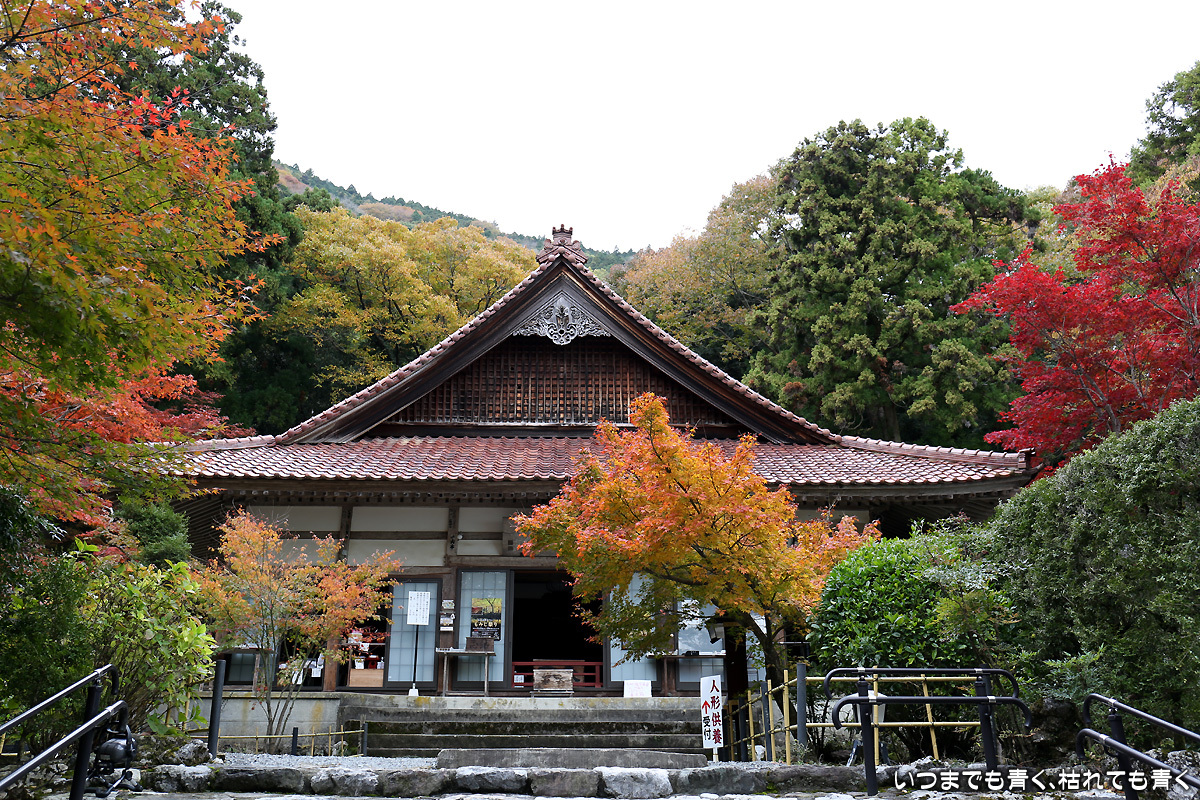 青い葉が目立つので、ご住職にまだ早いのでしょうかと聞いてみた。木の種類が違っていて順番に紅葉になるようで、今が見ごろにはいっていて、緑からオレンジ、赤色へグラデーションが見どころとのこと。明日からもみじ祭り、ライトアップも始まる。