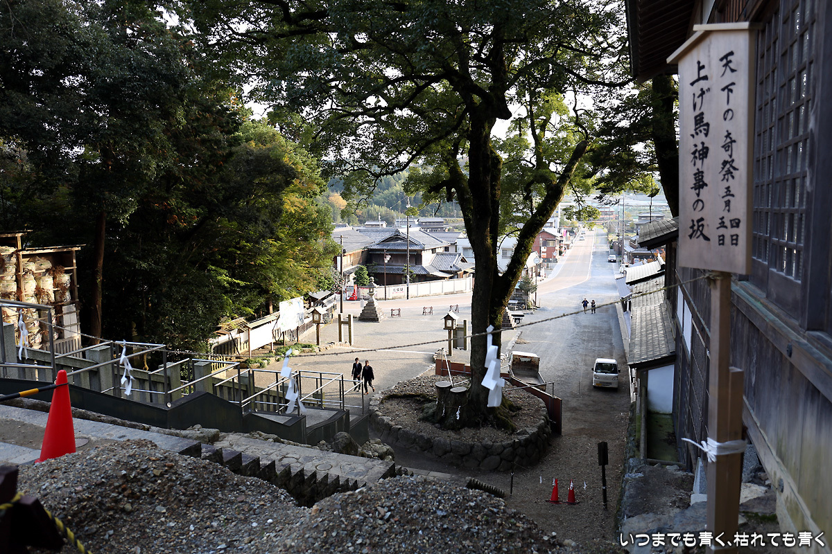 多度大社 ぶらりひとり旅 2017年11月17日(金) 23:59 いなべからの帰路、桑名に立ち寄り、一度も参拝したことがなかった多度大社に参拝してきた。 ここは、5月の多度祭での、急な坂を馬で駆け上がりその結果で農作の時期や豊凶を占なう上げ馬神事や、流鏑馬神事が行われることで有名である。来週の11月23日には、新嘗祭に併せ五穀豊穣を感謝する意味で流鏑馬祭が行われる。この日もその準備作業が始まっていた。 【このエントリは、2018年1月7日に2017年11月17日付で掲載しました。】