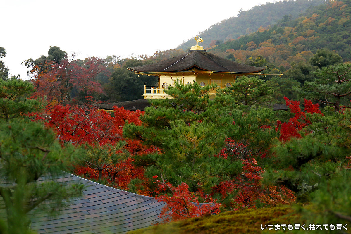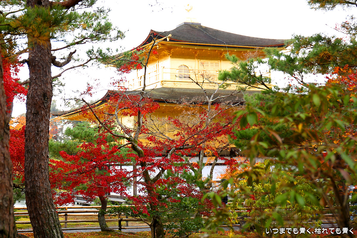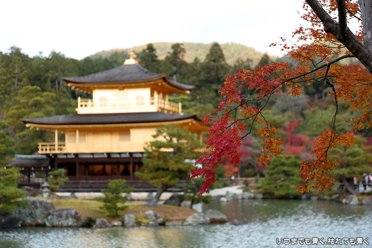 2017秋の京都・1-2 金閣寺の紅葉 ぶらりひとり旅 2017年11月23日(木) 23:59 次は御朱印お目当てのベタな金閣寺の紅葉の写真。 紅葉の名所というわけではないので、黄金色に輝く舎利殿と紅葉とのコラボはそれほどでもない。鐘楼や総門近辺の紅葉が色づき美しい。 【このエントリは、2018年1月7日に2017年11月23日付で掲載しました。】