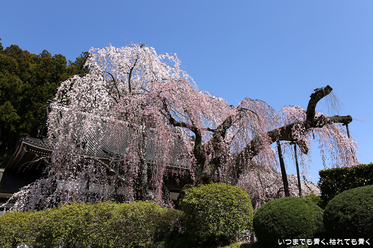 樹齢400年のしだれ桜がとてもきれい。静かで落ち着くお寺。