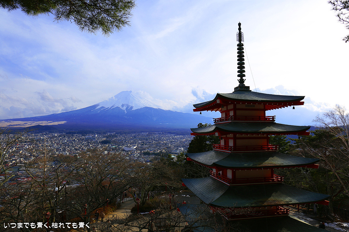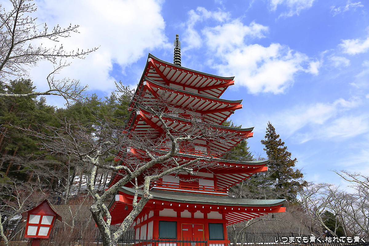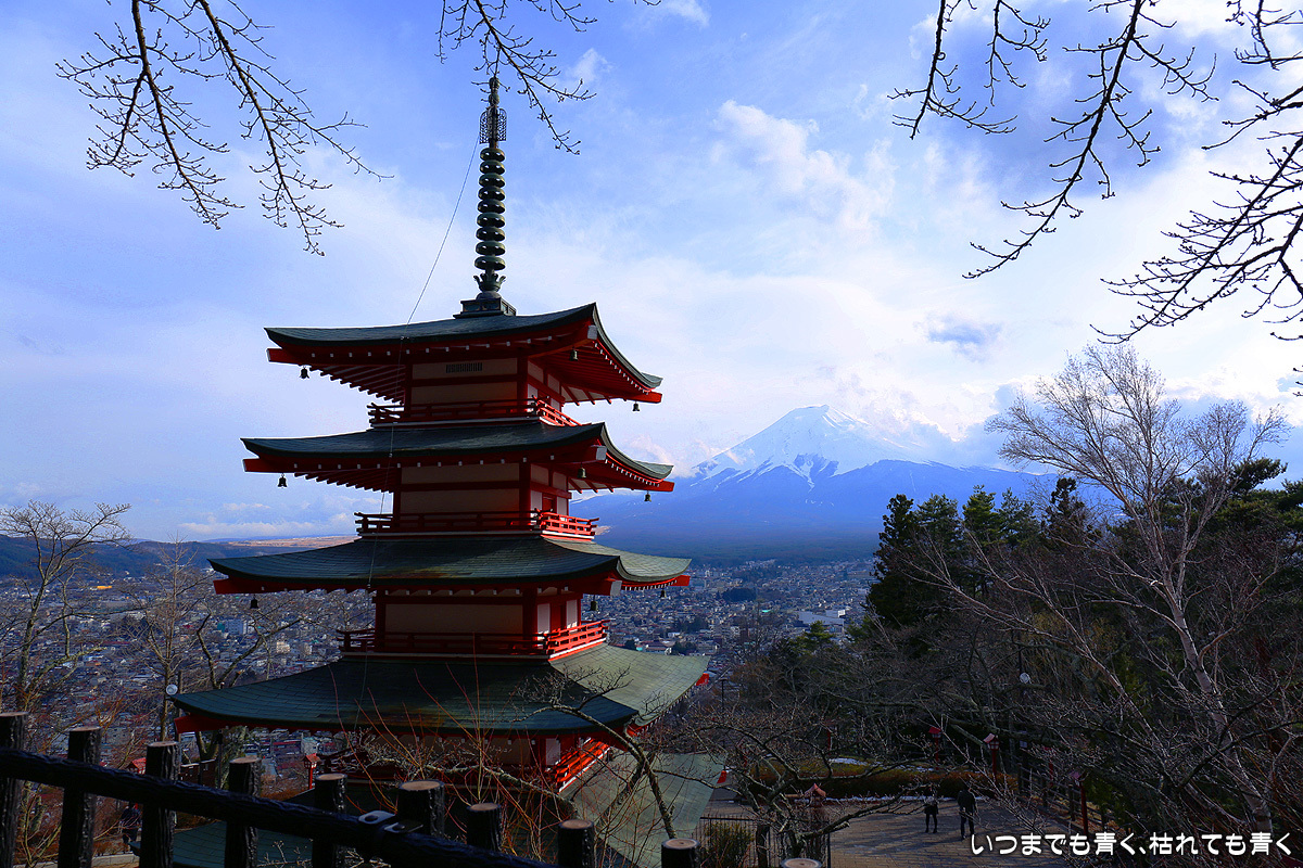海外の人から見れば、富士山、五重塔、桜が一堂に介する場所というのは魅力的なんだと思うが、日本人から見れば、富士山の美しさを引き立てる場所は他にもっと良いところがあるし、五重塔は歴史を感じさせるものではないし、桜が美しい場所は他に山ほどある。構図も単調になりがちだし、初心者向けの安いセットメニューのような感じ。日々表情はかわるのだろうけど、一度行けばいいかなというのが正直な感想。