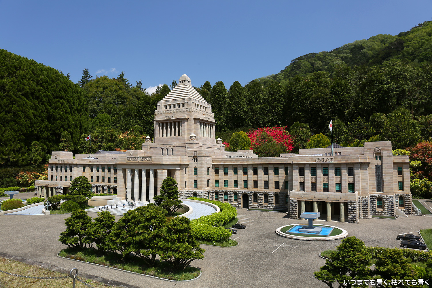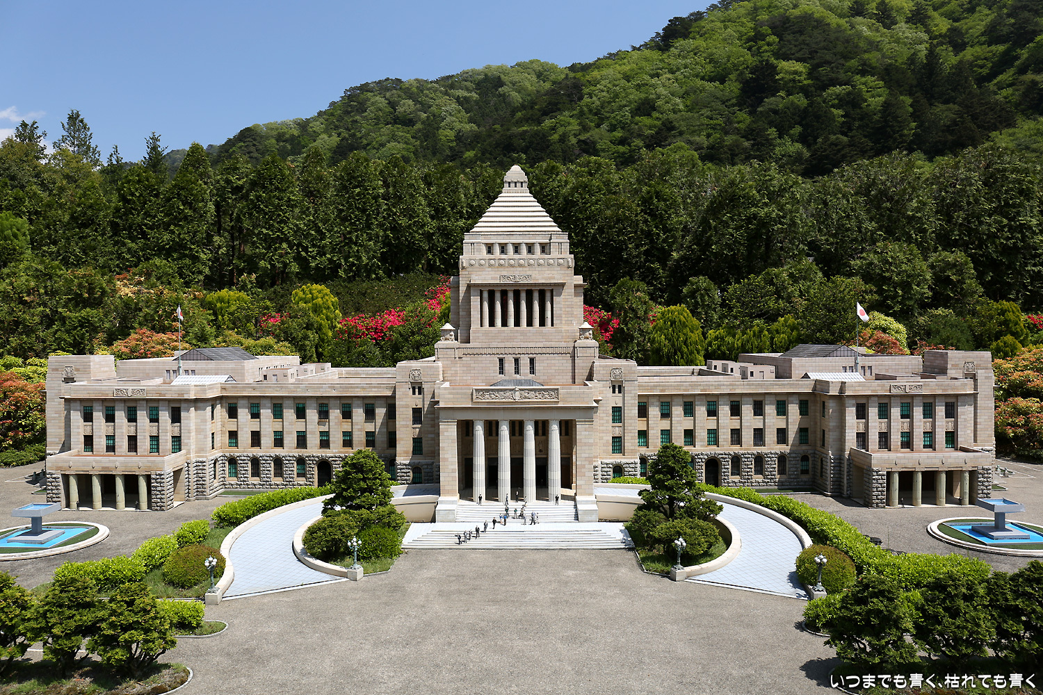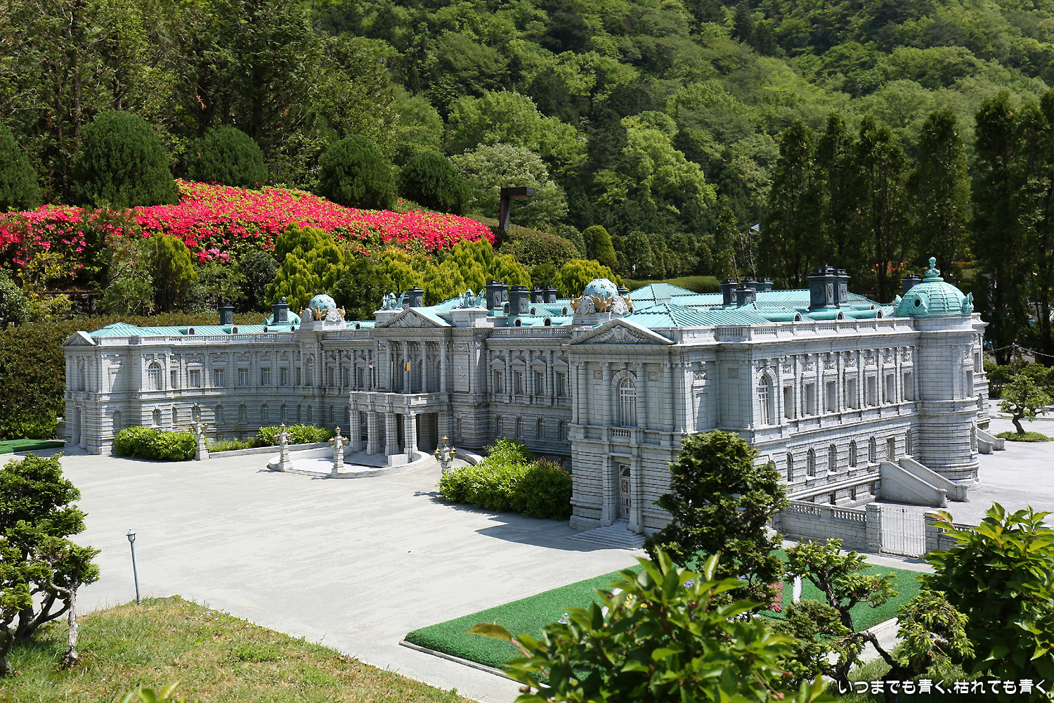 広大な敷地に世界21ヶ所102点の有名建造物が、1/25の縮尺で非常に精巧に再現されている。その精巧さは、写真だけを見れば本物と見間違うほど。しかもすべての展示物がきちんと手入れされていて、損傷していたり汚れていたりといった見苦しいところがまったくない。植樹や背景の木々も美しい。