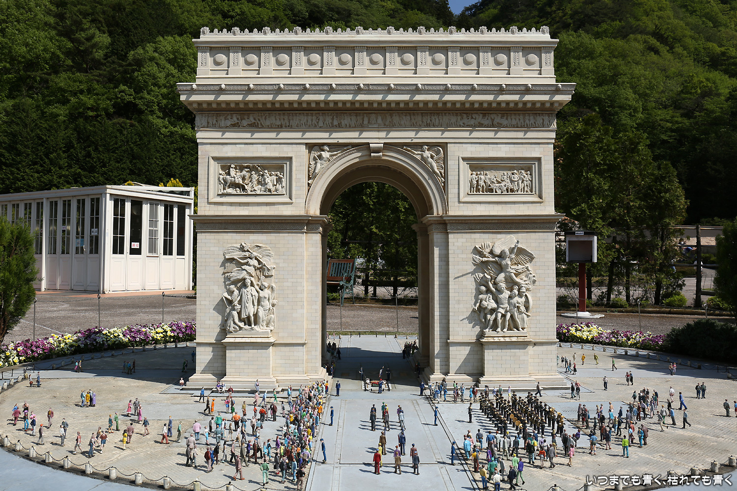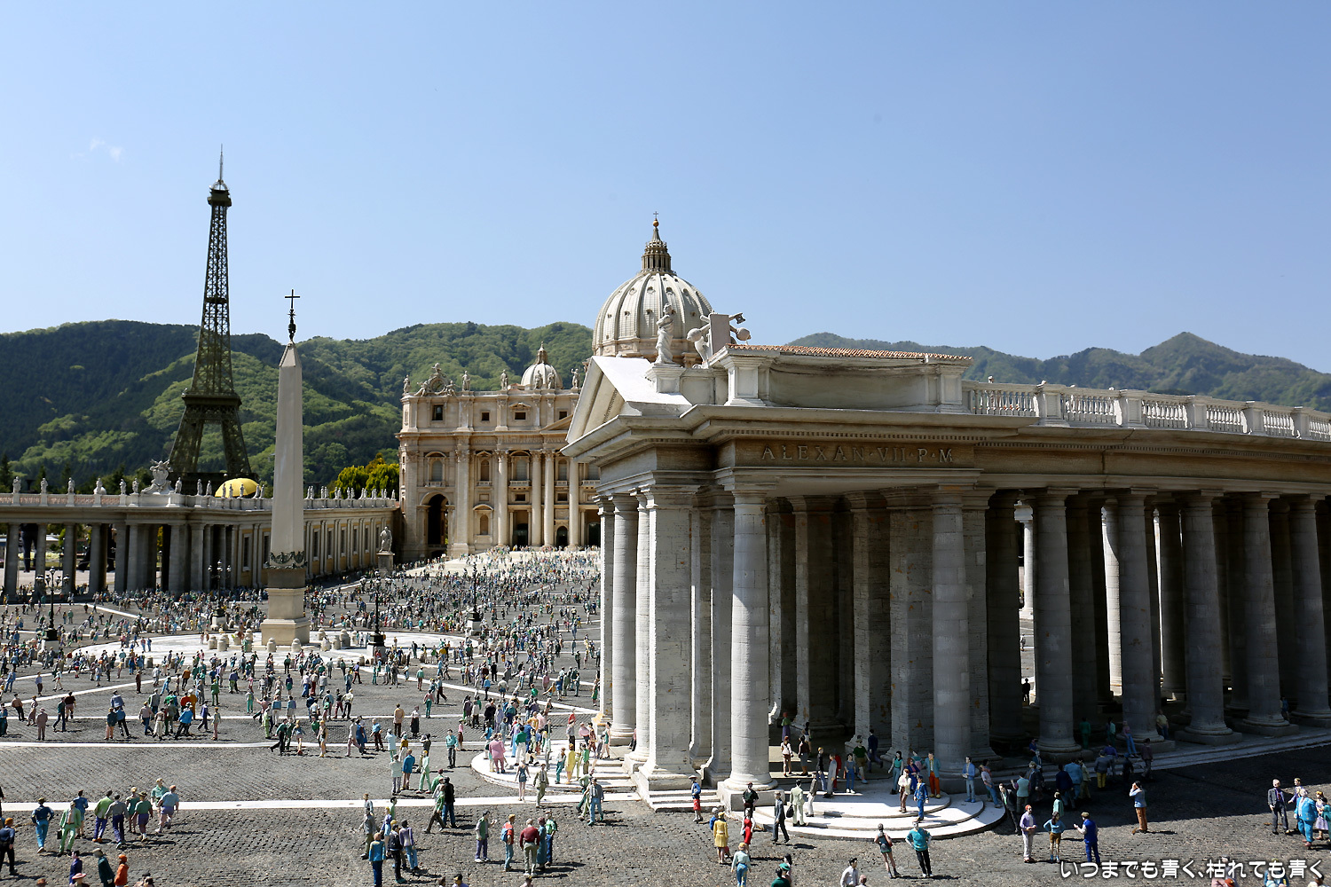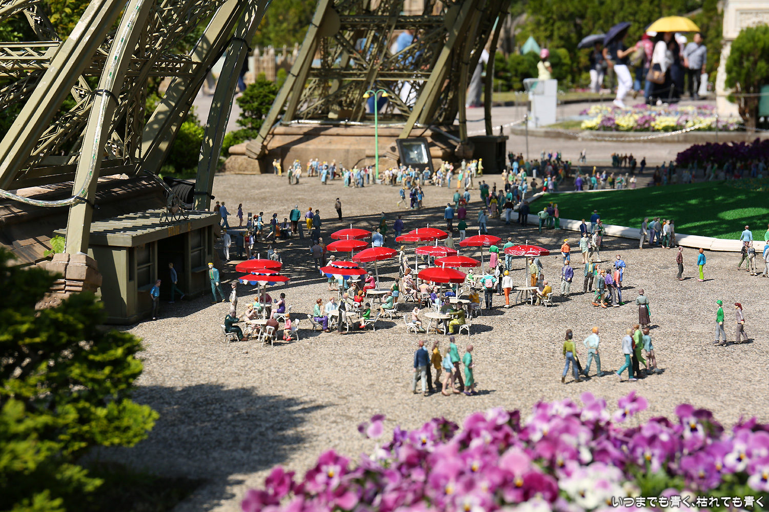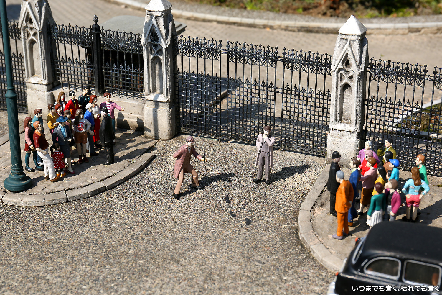 ヨーロッパゾーンが一番見ごたえがある。有名な歴史的建造物が、細部まで精巧に再現されている。写真を撮って拡大して見ても、まったく破綻を感じさせない。野外でこの素晴らしい出来栄えや彩色を保っているのは驚き。小さな住人の多さも驚きで、それによって建物が生き生きとしている。「ローマの休日」のシーンや、名探偵「シャーロックホームズ」にも出会える。