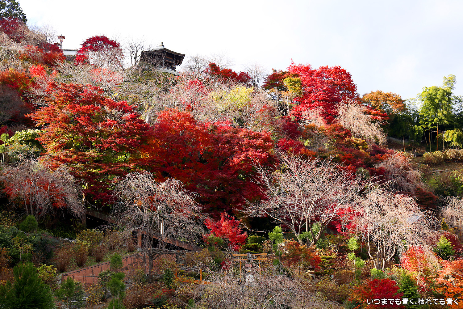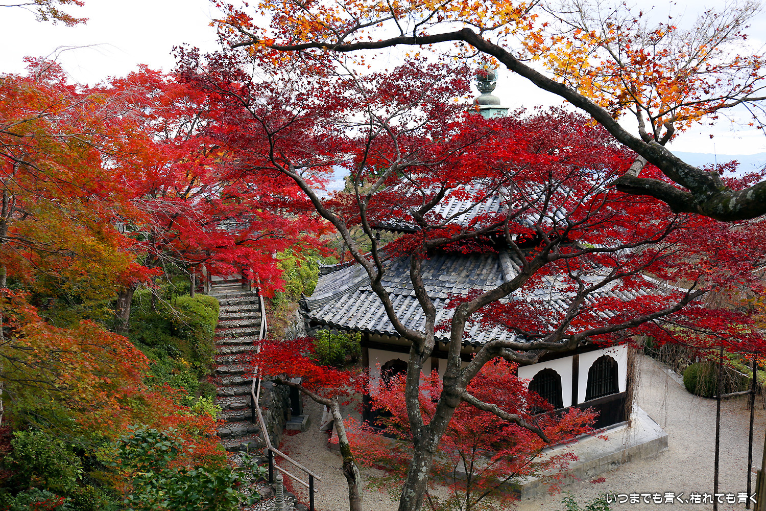 善峯寺には今年初めて訪れましたが、広い境内のすべての場所で、紅葉の写真の美しい構図探しを楽しめることができる素敵な寺院でした。京都の中心地から離れているからか人もそう多くなく、少し待てば人のいない写真も撮れます。