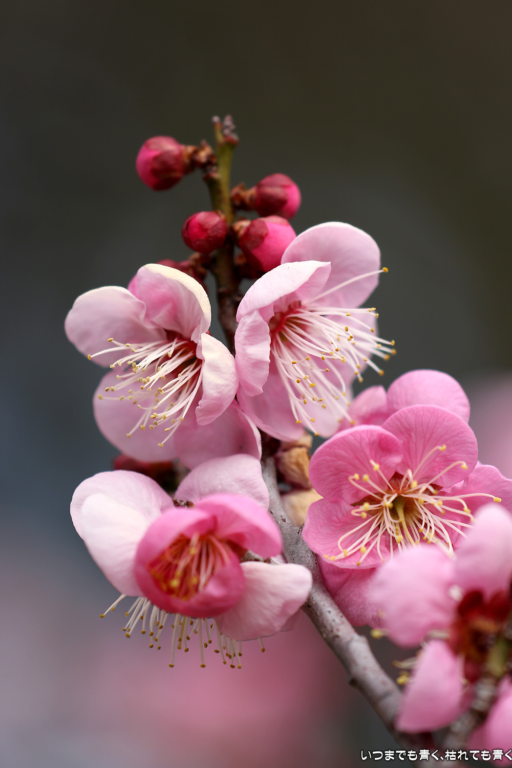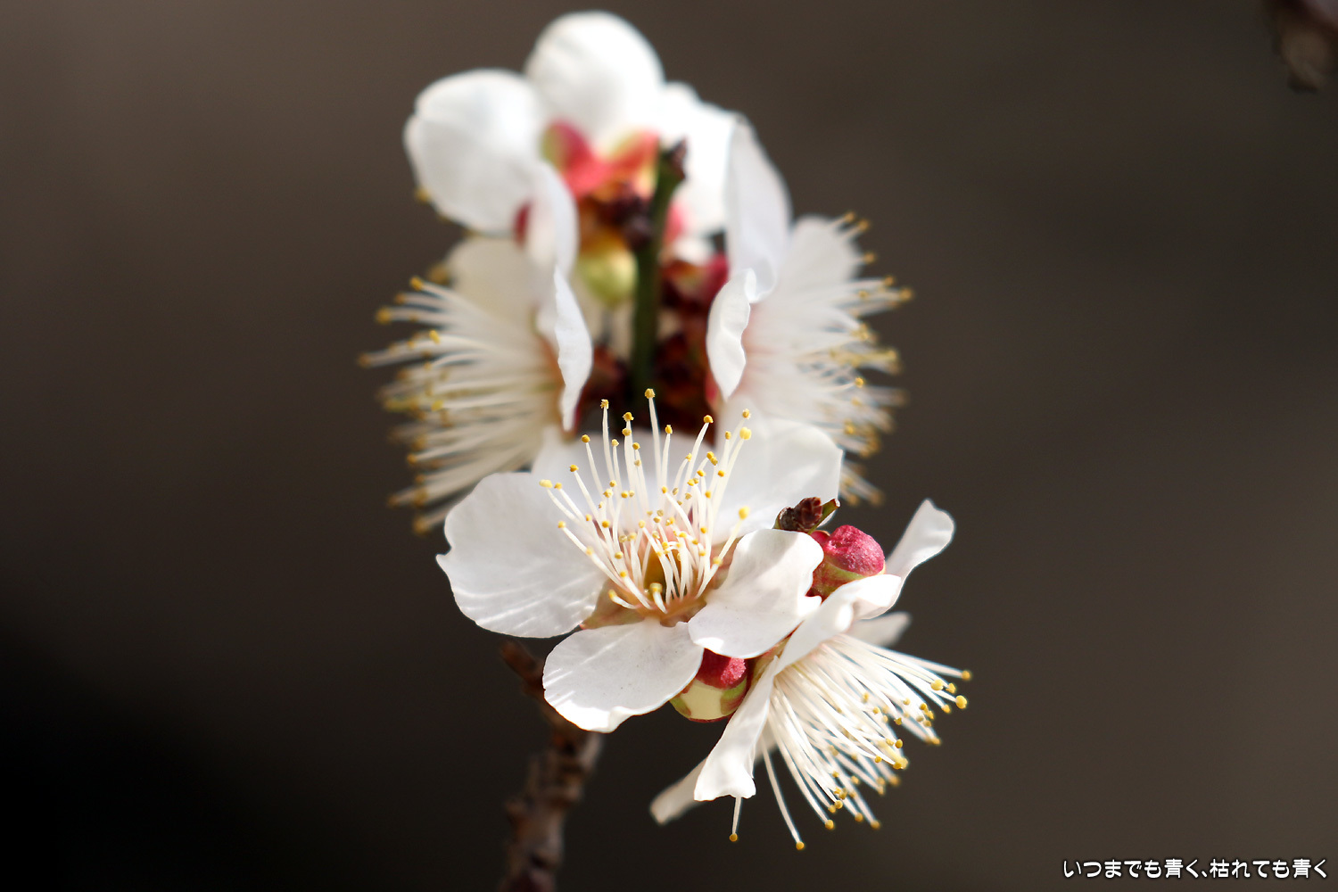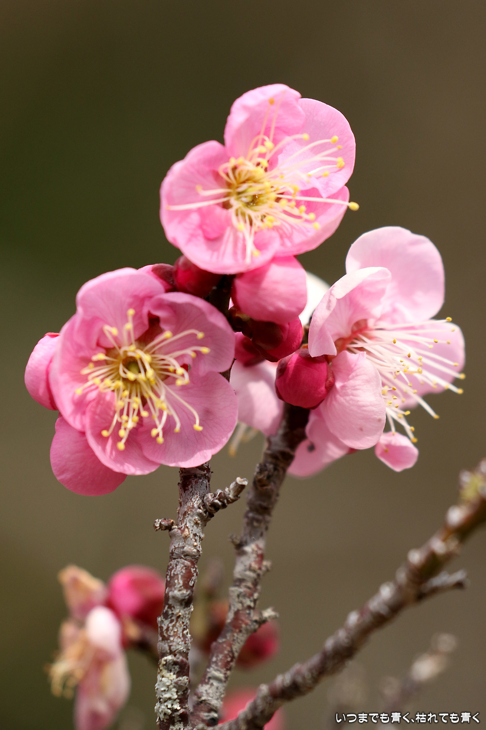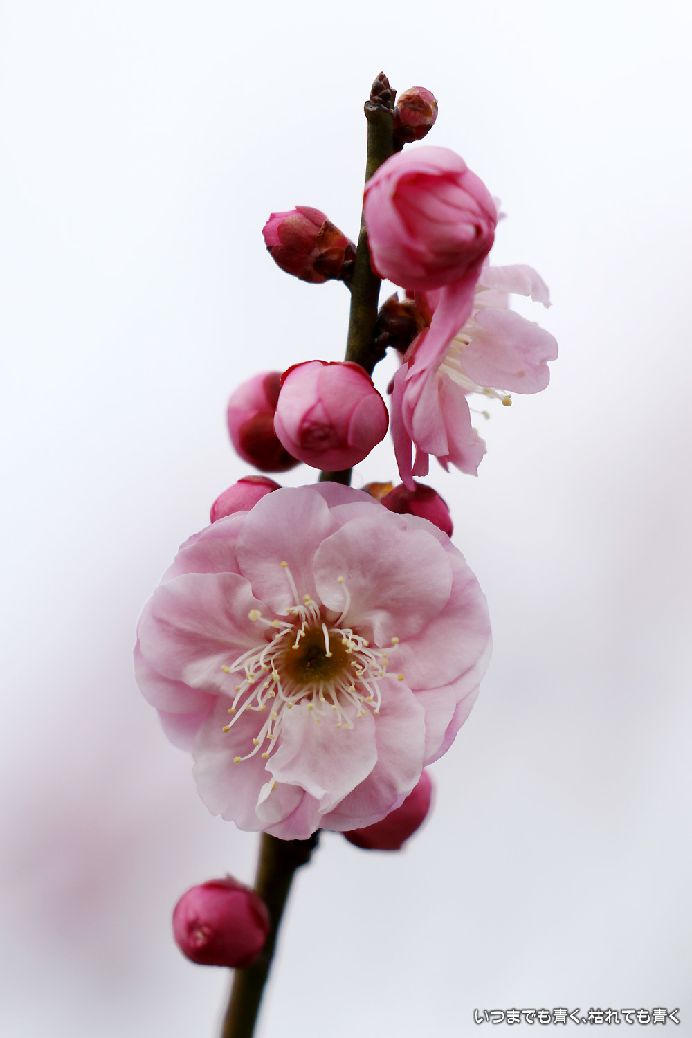 梅の花は、咲きはじめで派手さはまだありませんが、咲いたばかりの美しい花と蕾との落ち着いた雰囲気がとてもいいです。今日は曇り空で光が柔らかくて、写真も好みのものが撮れました。