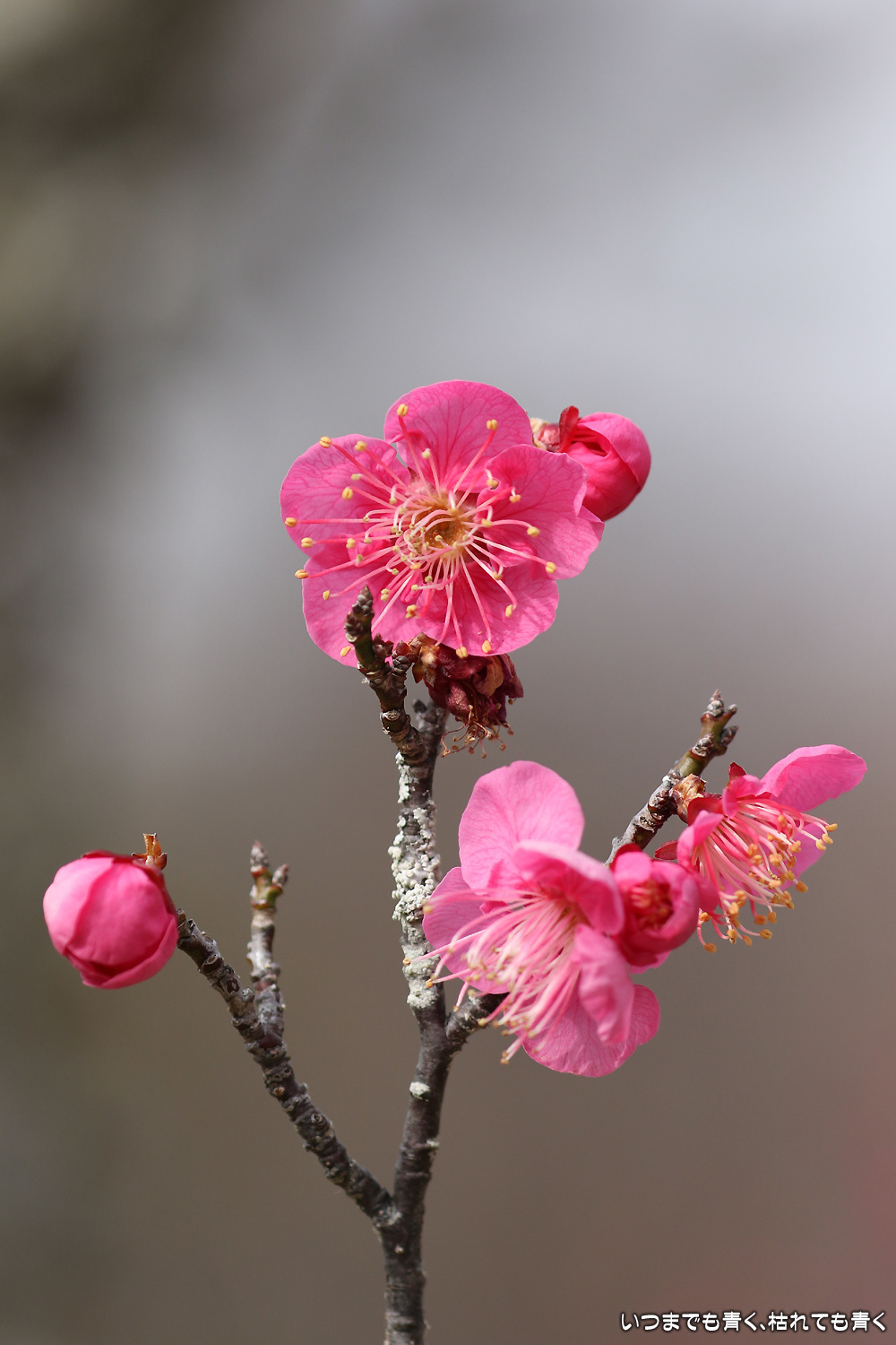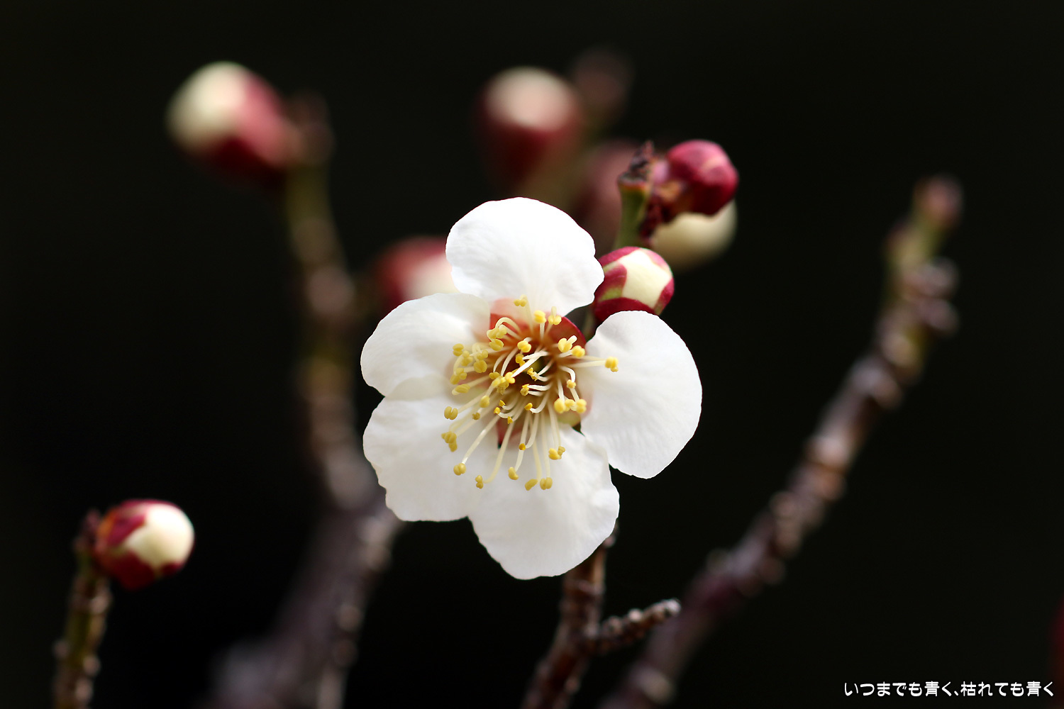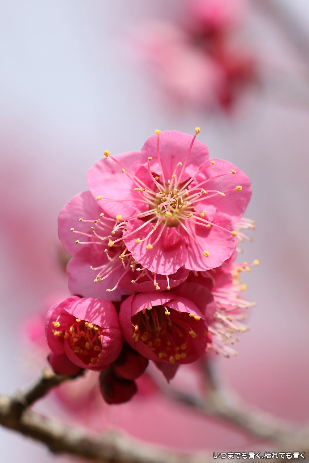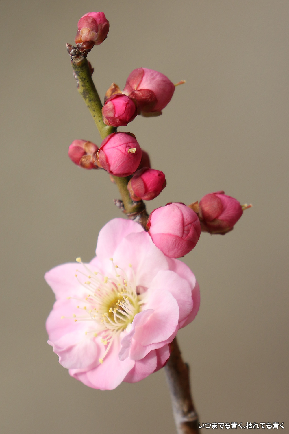 梅の花は、咲きはじめで派手さはまだありませんが、咲いたばかりの美しい花と蕾との落ち着いた雰囲気がとてもいいです。今日は曇り空で光が柔らかくて、写真も好みのものが撮れました。