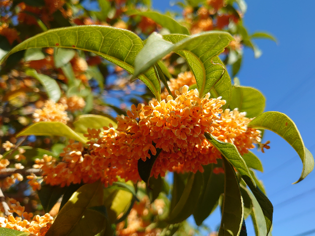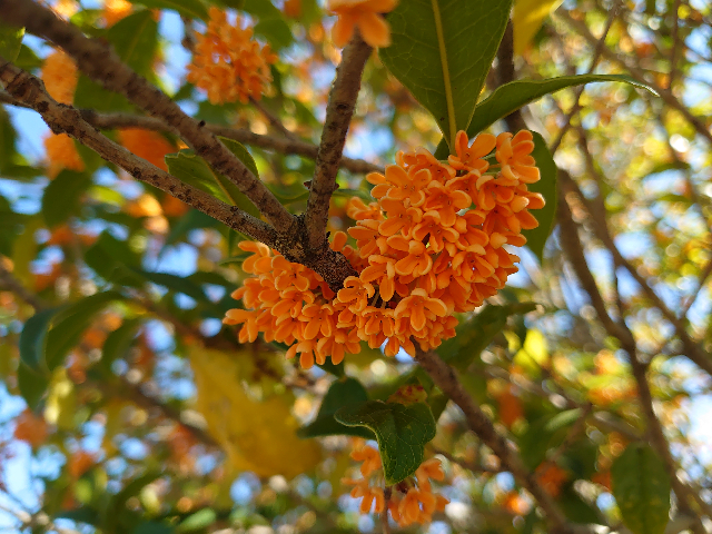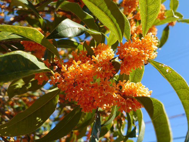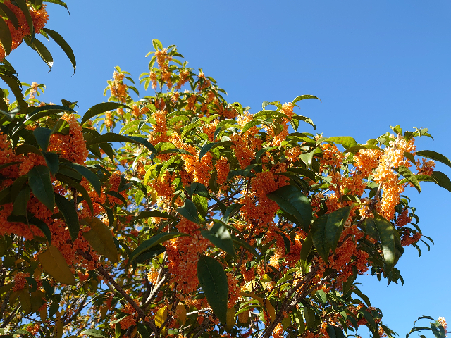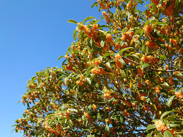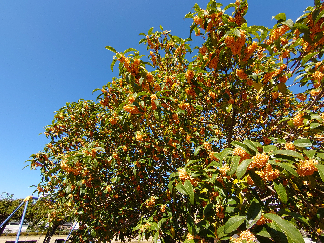 キンモクセイ、真っ盛り 日記/出来事 2021年11月5日(金) 20:182023年11月28日(火) 7:07 昼休みに長女と一緒に近所の公園のキンモクセイを見に行ってきました。見頃、香り頃、真っ盛り。