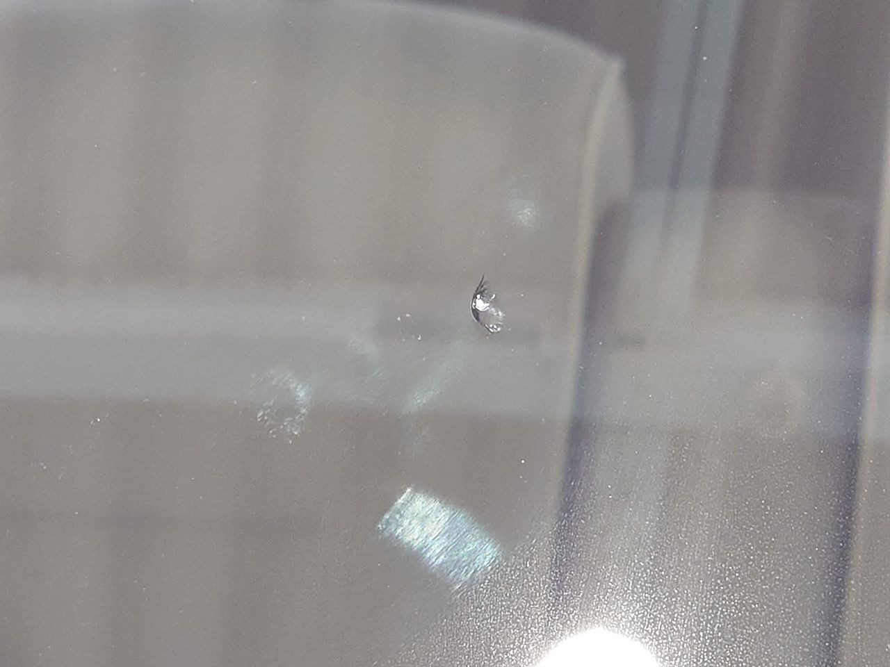 キャンバスのフロントガラスの飛び跳ねキズ、跡は残りますが、とりあえずリペア完了。