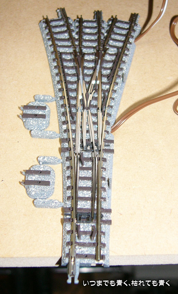 週末に久しぶりに覗いた模型店に完全選択式の3ウェイポイントの在庫がありましたので、衝動的に買っちゃいました。鉄道模型の楽しさのひとつは、こういうポイントの動作とそこを通過する車輌の動きなんですよね。