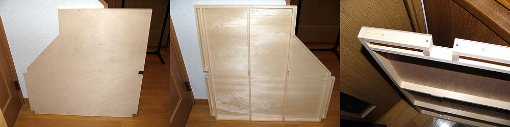 以前にも書いた通り、2.3mm厚ベニヤ合板とエゾ松の12×24角材で組み上げてあります。