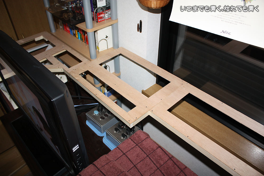 やっと、ベースパネルの穴あけが完了しました。これでベースボードの裏からの作業ができるようになりましたので、ベースボードをセッティングすることができます。