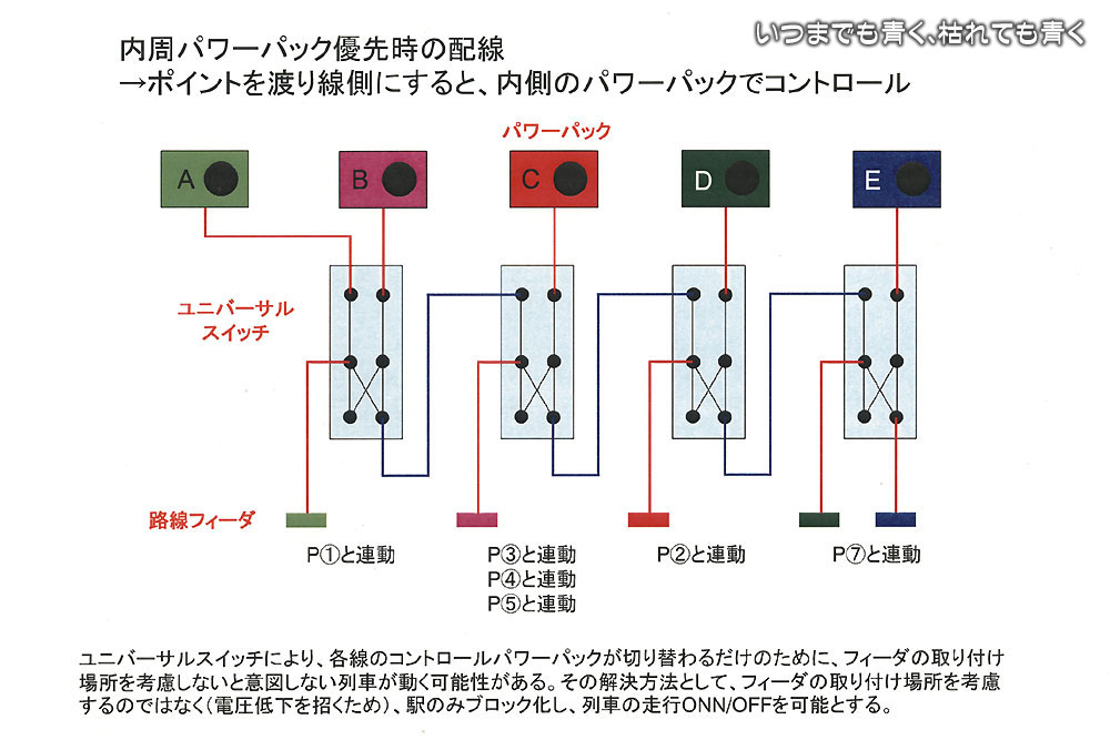 特に、走行電源はレールからですので、列車ごとの電源が独立するように線路を