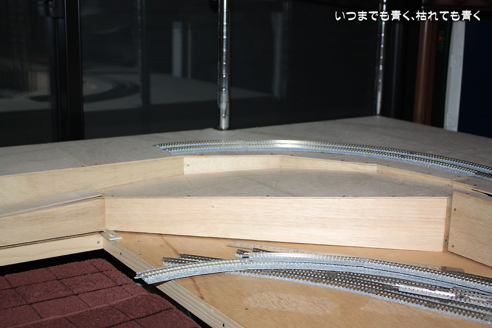 レイアウトの高低差をつけるという意味では別のことを考えています。オール高架で新幹線専用線路を作るつもりでいます。鉄橋などの情景はそちらで実現したいと考えています。ただ、線路スペースを優先にしたため、町や川を作る場所がないのだけは残念なのです。何かいい知恵はないものやらとずっと考えています。たぶん、今のままでは、運転は楽しめるものの、情景を楽しめるレイアウトにはならないと思っています。