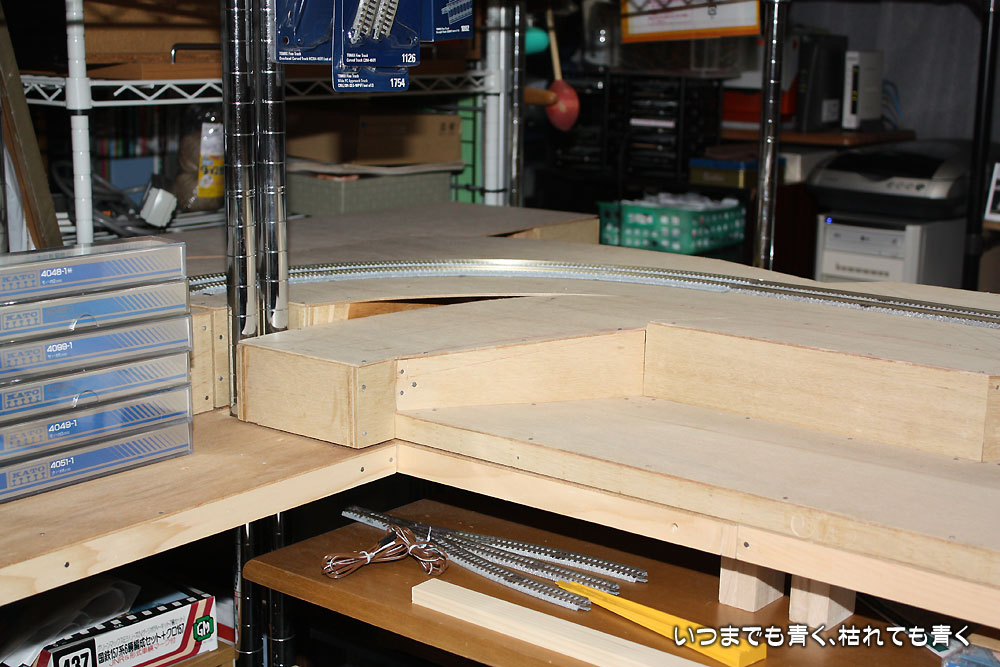 4つのセクションにわけているといっても組み立て分解を可能にする分割ではなくて、将来移設したり解体したりする時に、ある程度は分解ができるようにという程度のものです。レイアウト製作は、半固定式レイアウトのつもりで製作をしていきます。