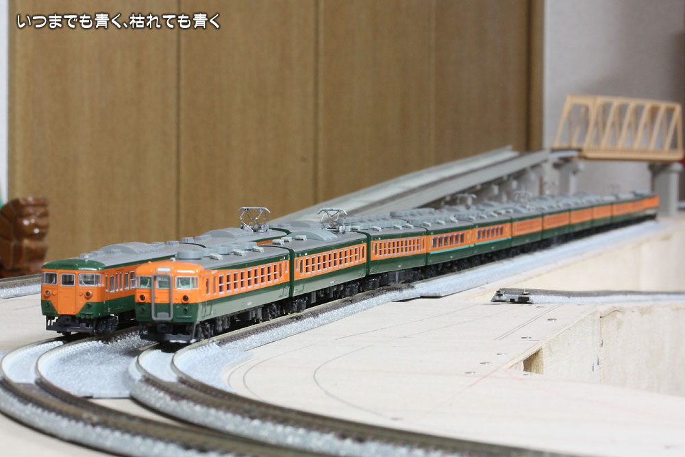 ![]() KATOの113系11連と151系「こだま」12連。 | ![]() マイクロエース「大垣行夜行」12連(右) |