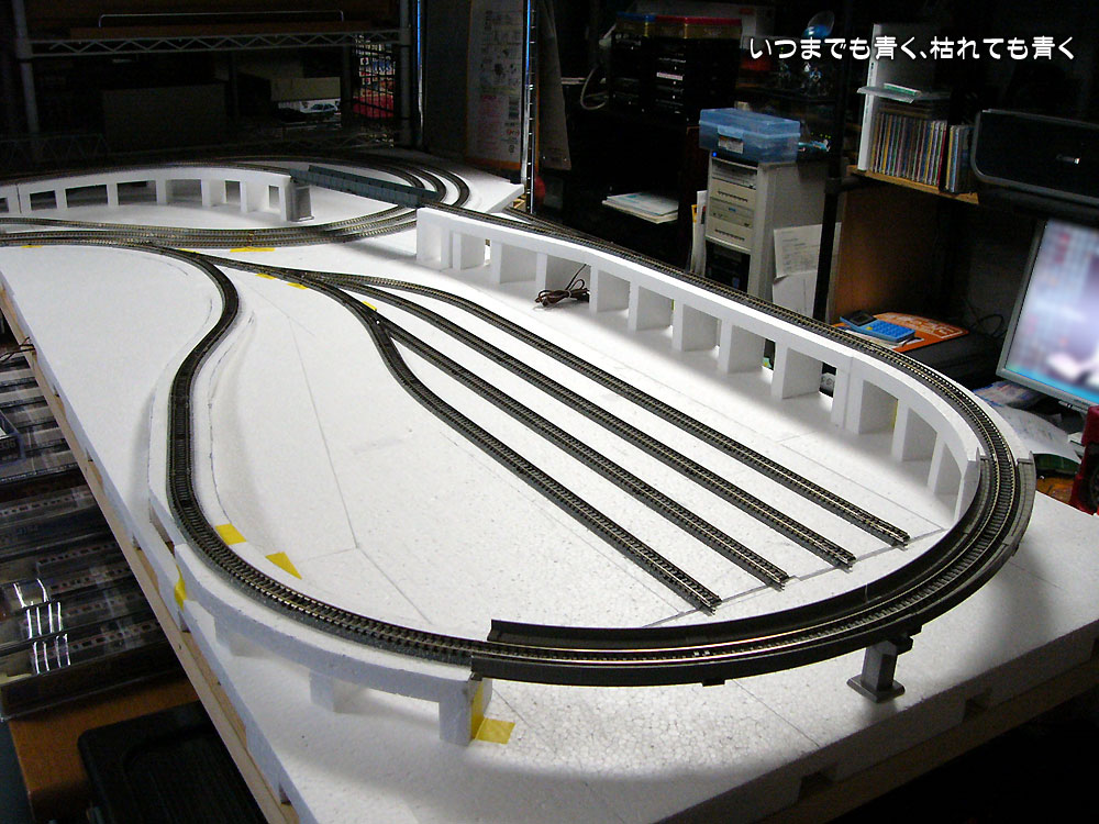 ヤード部分(ひょっとして終着駅にするかも知れませんが)と、複線ループと単線ループを結ぶ連絡線のカーブ半径緩和工事を進めています。