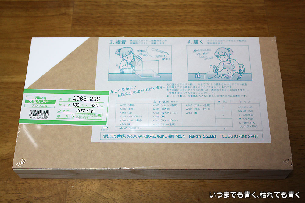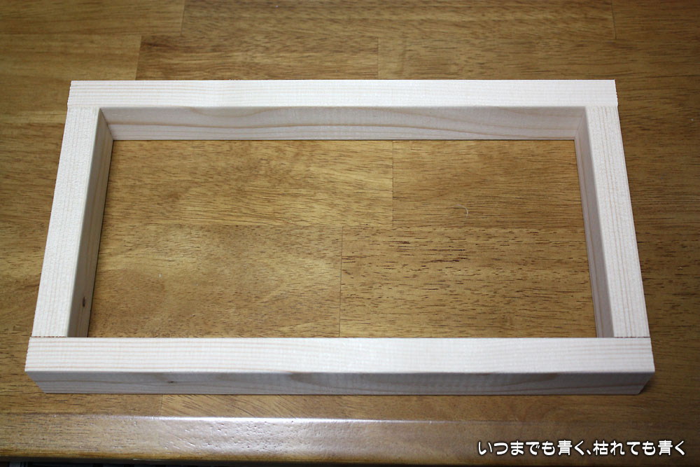 ボードは2mm厚の320mm×180mmアクリル板とし、それが乗っかる枠は38mm×19mmSPF角材。