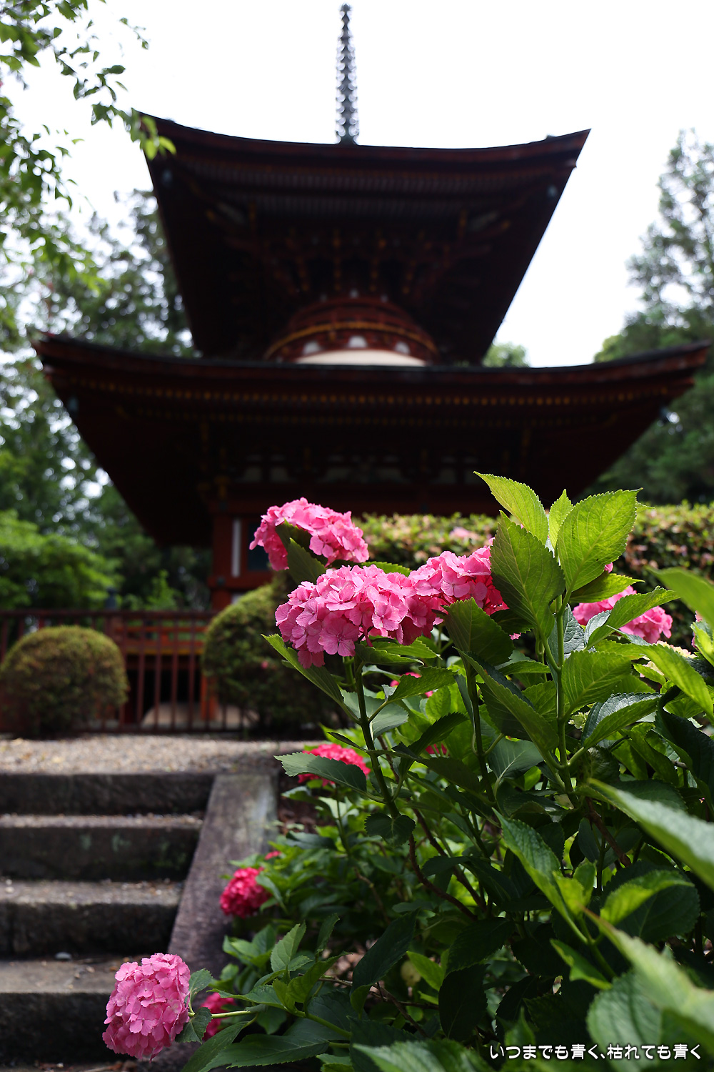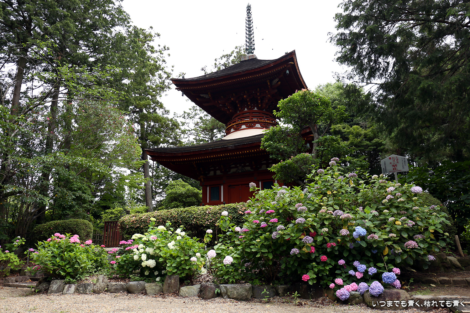 久米寺は、近鉄南大阪線を挟んで橿原神宮の南側にある寺院です。紫陽花の名所ということで今回初めて訪れました。境内はとても広々しているのに、紫陽花はどこにも見当たらず最初はちょっと戸惑いました。久米寺の紫陽花は、本堂裏側に紫陽花園があり、そこにたくさんの紫陽花が植えられています。紫陽花園は有料(400円)となりますが、記念に紫陽花園のタオルをいただけます。紫陽花園の紫陽花は、咲いている花が少なくまばらで、時期が早すぎるのか今年はこんな咲き具合なのかわかりませんが寂しい感じでした。多宝塔のまわりももう少したくさん咲いていると絵になるのに残念な感じでした。そんな状況でしたので、写真はきれいな花を探しての一輪写真が多くなってしまいました。