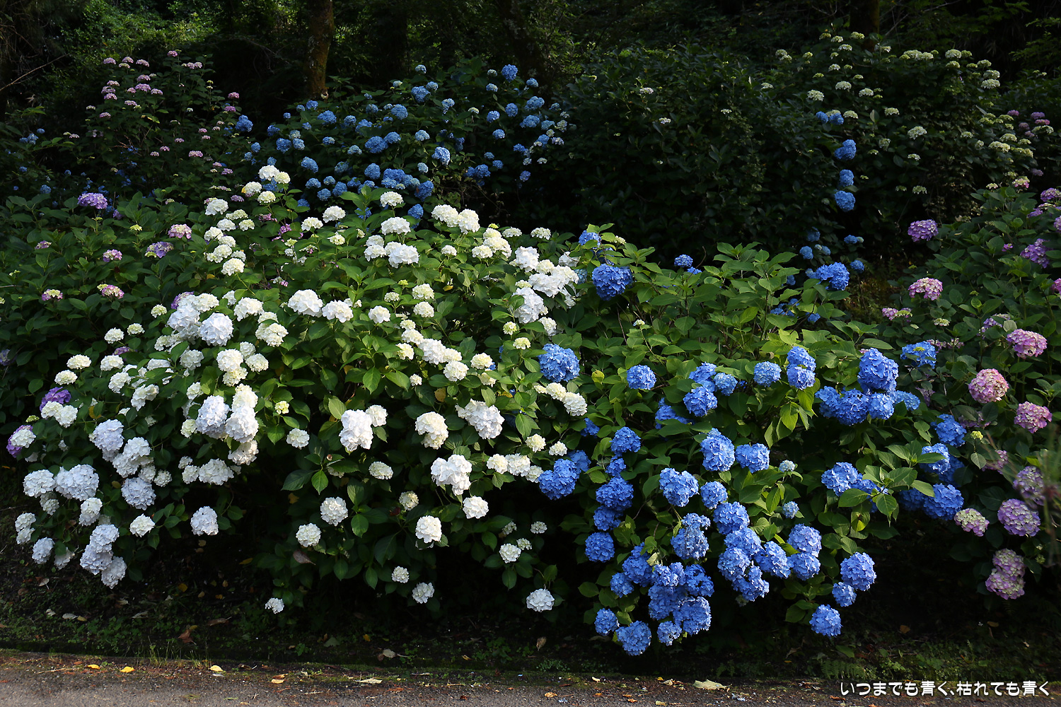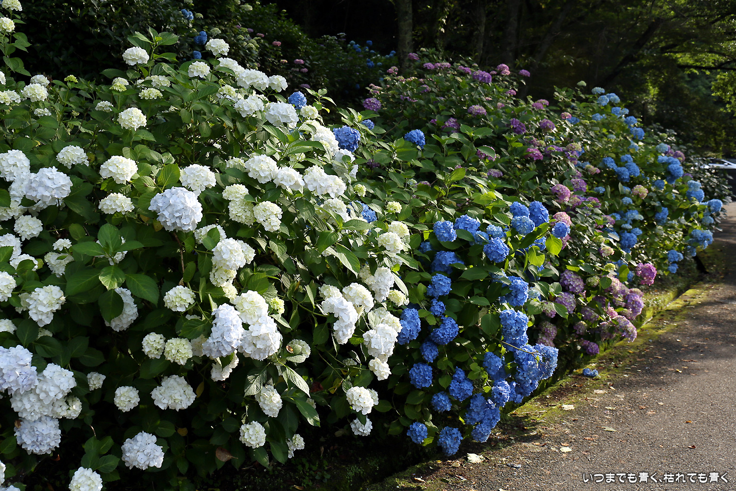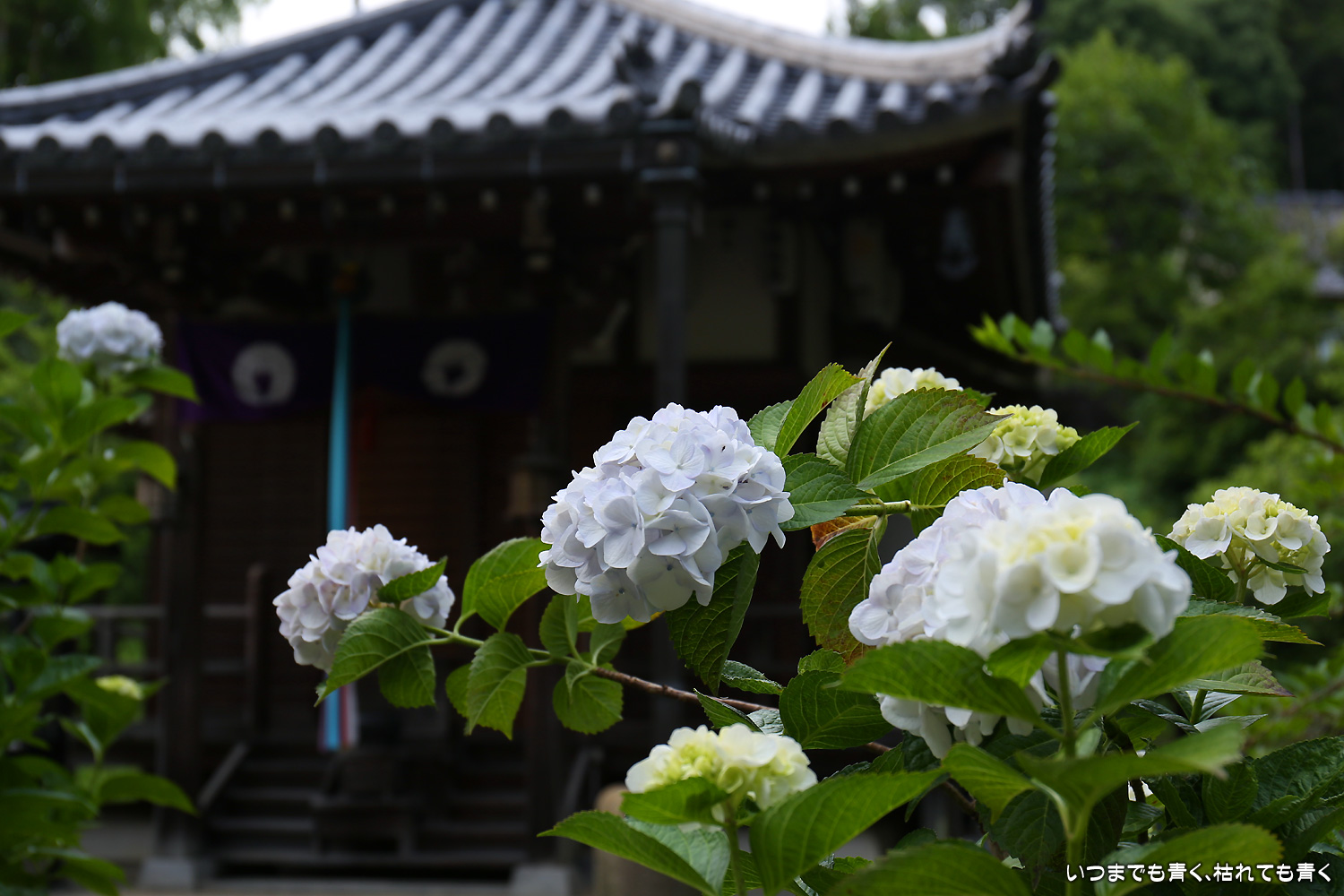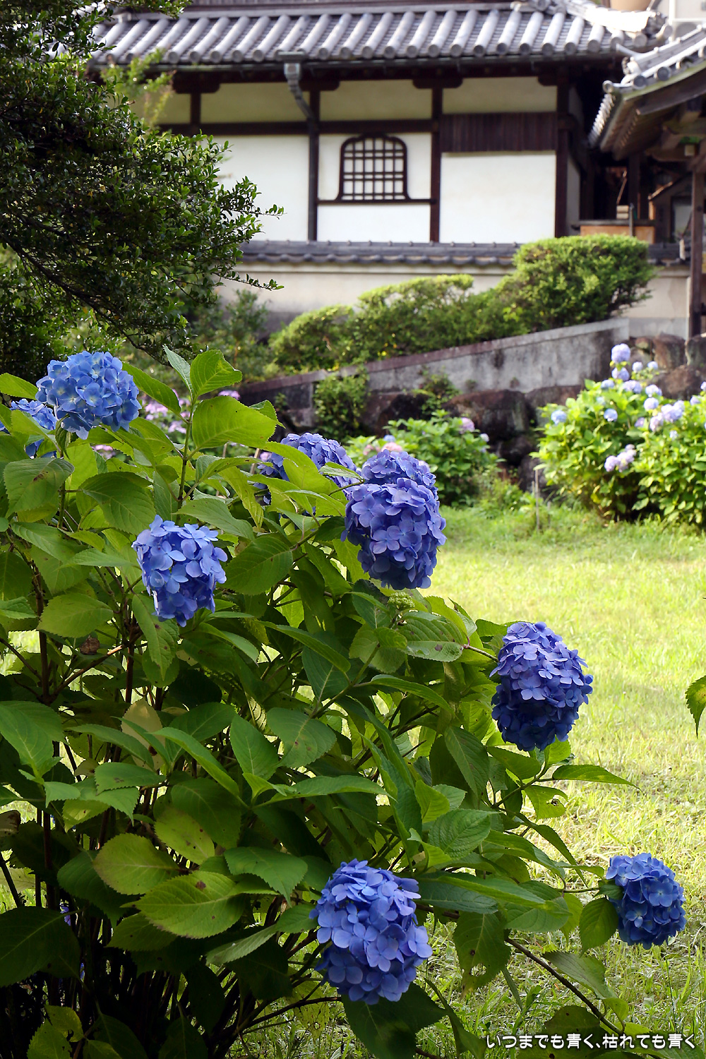 長弓寺は、4つの塔頭寺院(法華院、薬師院、円生院、宝光院)があり、無住の宝光院を除く3つの寺院で長弓寺を管理しています。奈良の紫陽花のある寺社を検索して見つけました。本堂は重要文化財に指定されています。生駒市はちょっと遠かったのですが、初めての所は行っておかないと後悔するので、到着時刻が4時半を過ぎるのはわかっていましたが無理して向かいました。なんとか本堂を参拝し、薬師院で御朱印をいただき、そこで本堂の建築の特徴を伺いました。紫陽花は期待していた感じではありませんでした。参道に普通に紫陽花が咲いているだけでした。それでも、なんとかいろいろと撮影しましたが、夕刻で十分な光量を得ることができず、手持ち撮影ではピントがイマイチとなってしまいました。
