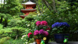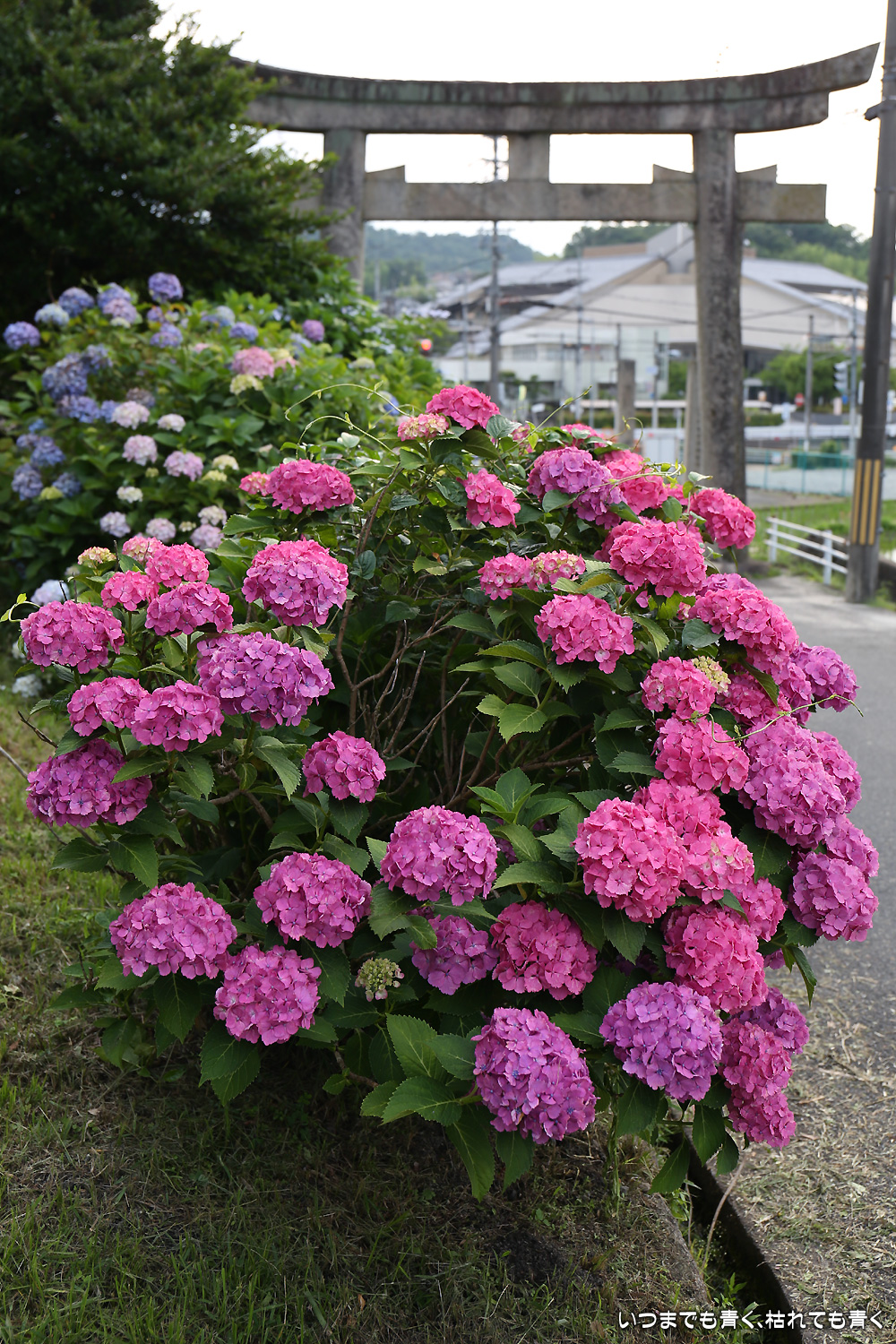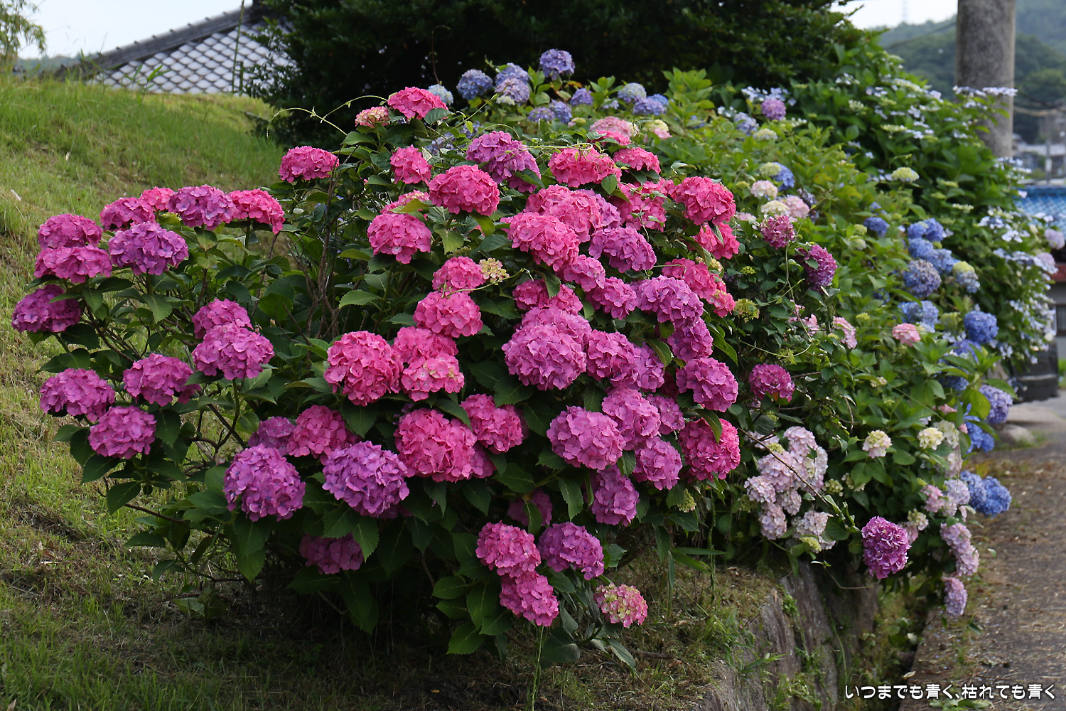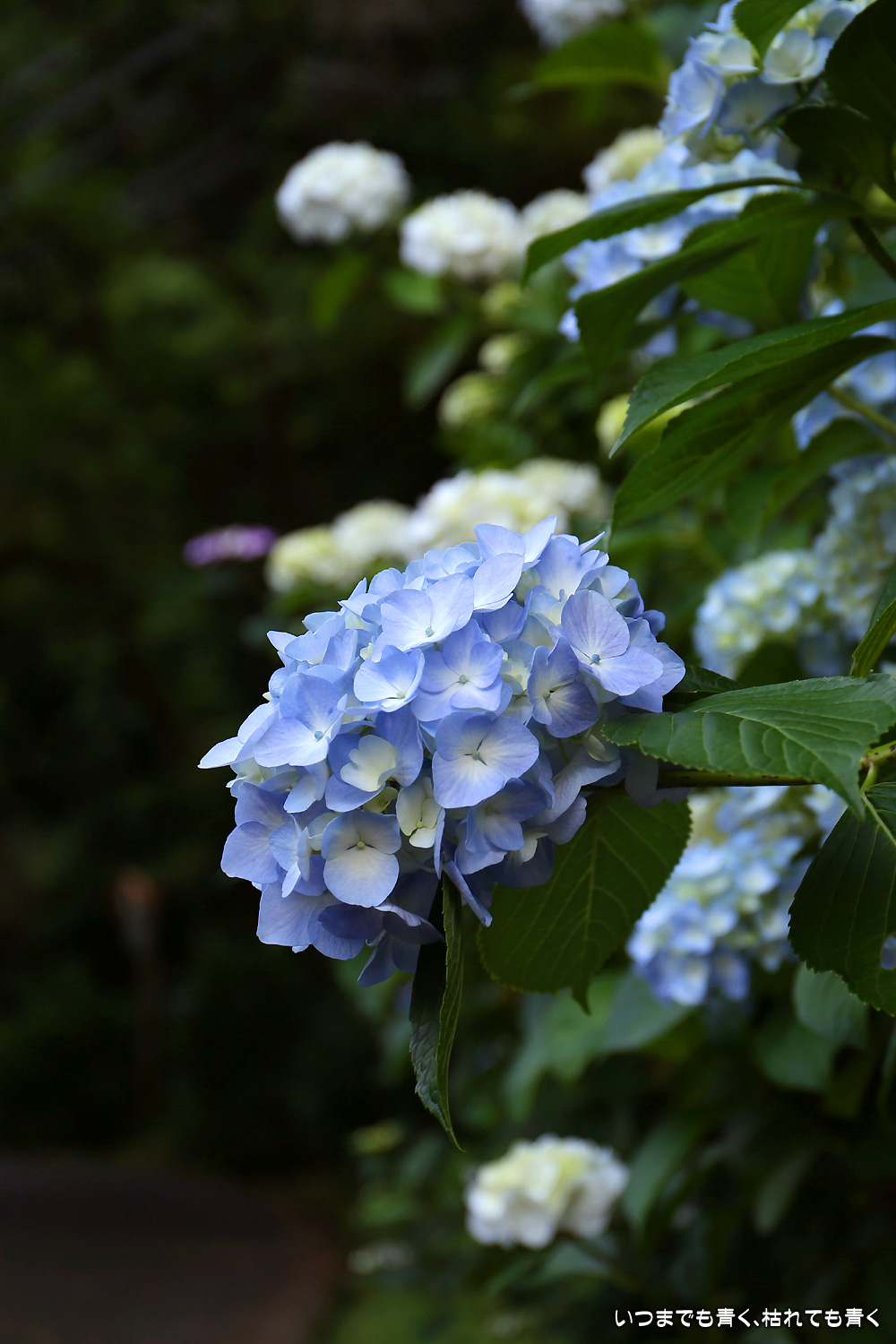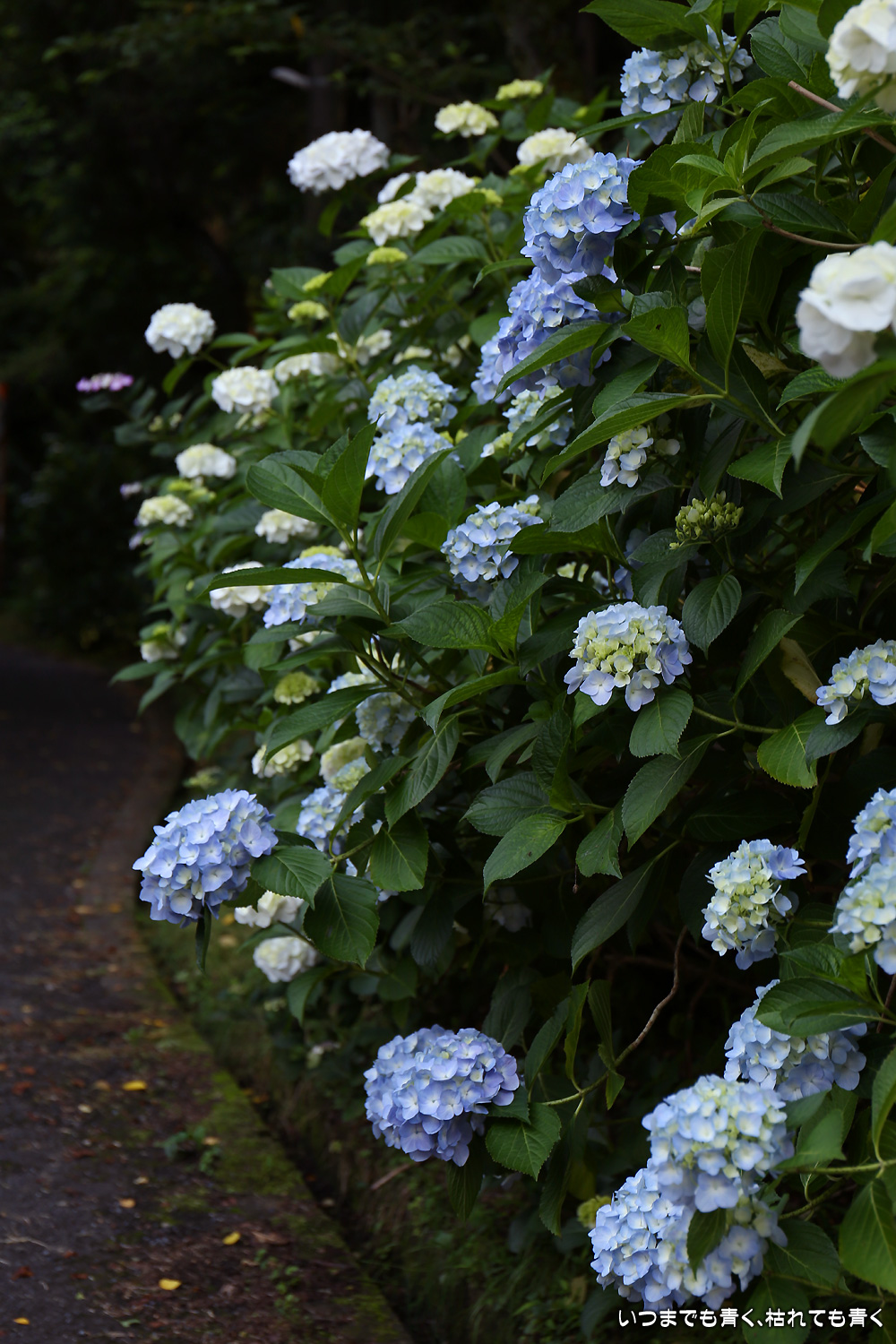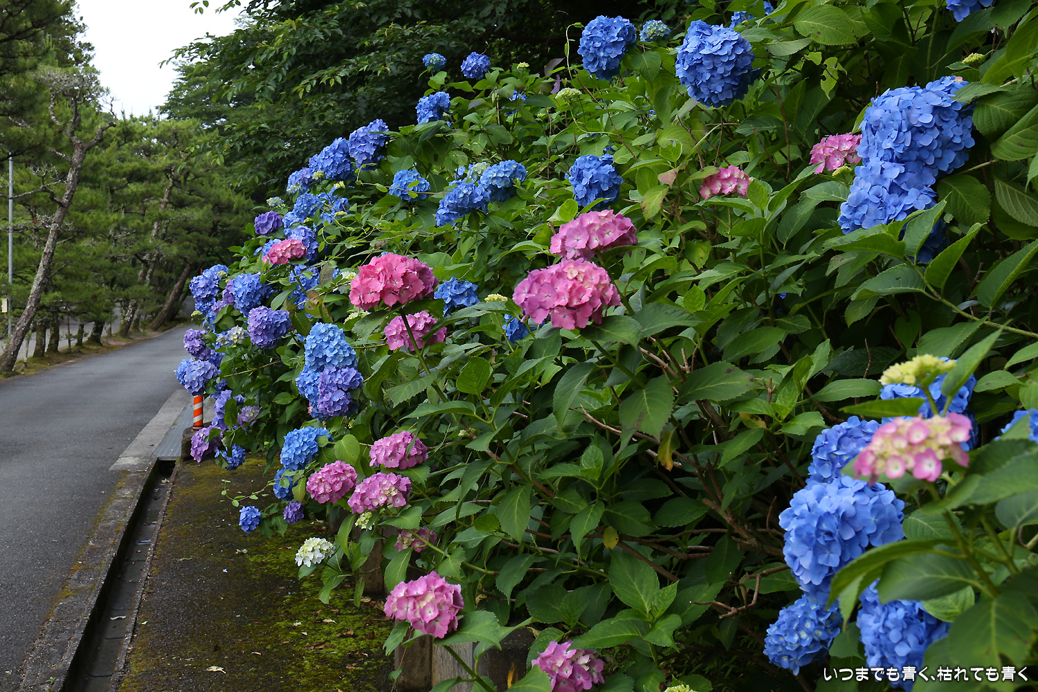 長弓寺は、4つの塔頭寺院(法華院、薬師院、円生院、宝光院)があり、無住の宝光院を除く3つの寺院で長弓寺を管理しています。奈良の紫陽花のある寺社を検索して見つけました。本堂は重要文化財に指定されています。生駒市はちょっと遠かったのですが、初めての所は行っておかないと後悔するので、到着時刻が4時半を過ぎるのはわかっていましたが無理して向かいました。なんとか本堂を参拝し、薬師院で御朱印をいただき、そこで本堂の建築の特徴を伺いました。紫陽花は期待していた感じではありませんでした。参道に普通に紫陽花が咲いているだけでした。それでも、なんとかいろいろと撮影しましたが、夕刻で十分な光量を得ることができず、手持ち撮影ではピントがイマイチとなってしまいました。