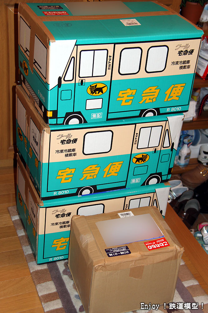 昨夜、こんなダンボール箱が届きました。ゆうパック120サイズが3個、100サイズが1個です。ダンボールの中は下の写真の通り、デアゴスティーニの「週刊鉄道データファイル」とそのバインダーです。