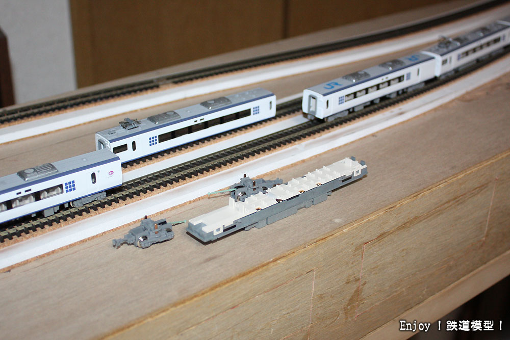 分解したついでに、中間カプラーをKATOカプラーからKATOカプラー密連形に交換。室内灯もつけようと思ったのですが、動力車への室内灯取り付けは、加工が必要で少し手間がかかりそうでしたので、現時点での室内灯点灯化は諦めました。