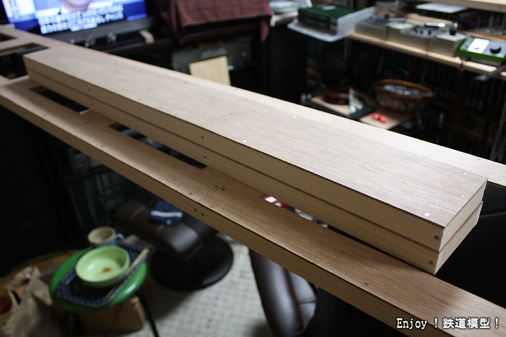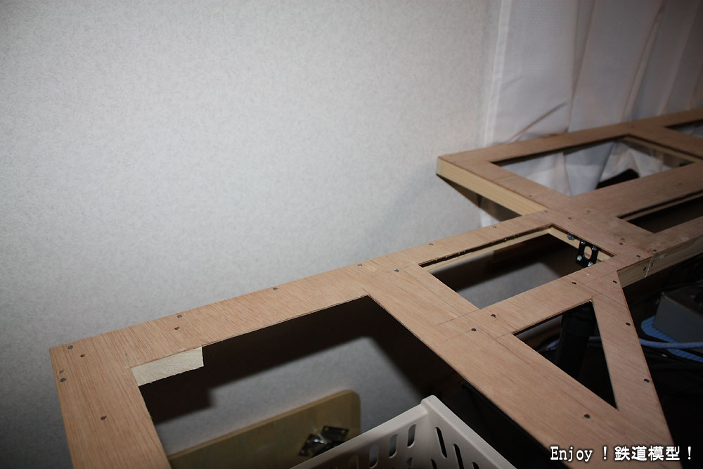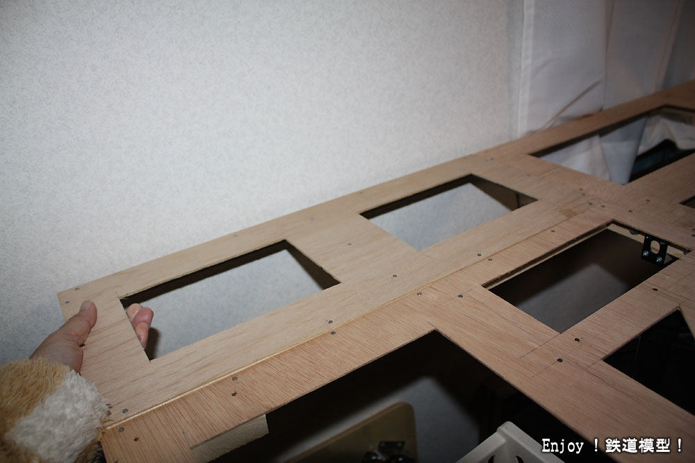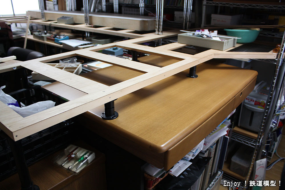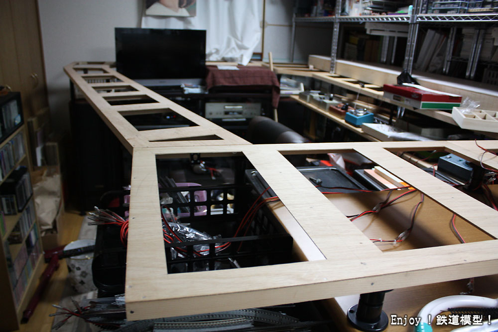 レイアウトですが、先月初めに線路とベースボードを取り外し、ベースパネルのみにしてしまいました。理由は、緩和曲線の無いカーブへの不満と騒音、そしてベースボードを作りこんでしまったことによる自由度や拡張性の無さです。ベースパネルだけにして、今度は自作の木製ベースボードでは無く、騒音対策としてスタイロフォームにするつもりです。現在、ベースパネルを拡張工事中です。