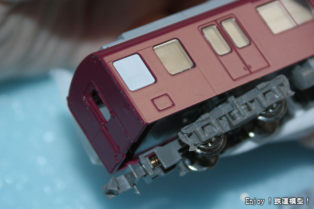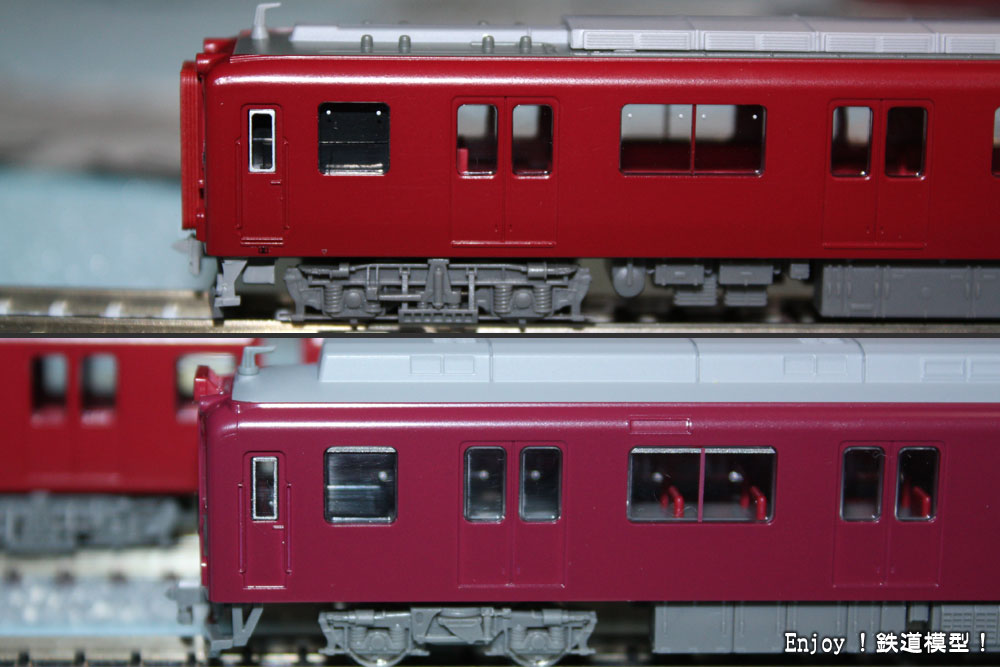 グリーンマックスの近鉄2610系は、まずマルーン色がおかしいのが一番の残念なところ。近鉄マルーンは光があたると赤にみえる色調なのですが、グリーンマックスのマルーン色はまさに小豆色です。しかも塗装に濃淡があり色のりがよくありません。自作で自分で塗装した2410系の塗装と比べても違和感大です。それと、中間車輌2772のトイレ部分の窓まわりが別金型での成型らしく、その金型の境がパーティングラインとしてはっきりと残っています。これはいただけません。走行性能は、スムーズではありますが、音がすごくうるさいです。実車に似ているといえば似ているような気もするので、まぁそれは許容できる部分ではありますが。他のグリーンマックスの完成車にも言えることですが、全体的にこの出来であればもう少し価格を抑えてほしい(4輌で税別本体定価15,300円)と思うのが正直なところです。しかし、いろいろと出していただくのは素材としては嬉しいので、好きな形式であればこうして買うようにはしています。この車輌も、このまま楽しむのではなく、一度塗装を剥がしてパーティングラインを整えてから再塗装するということも楽しみにしようと思います。