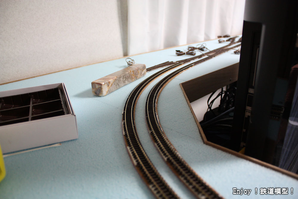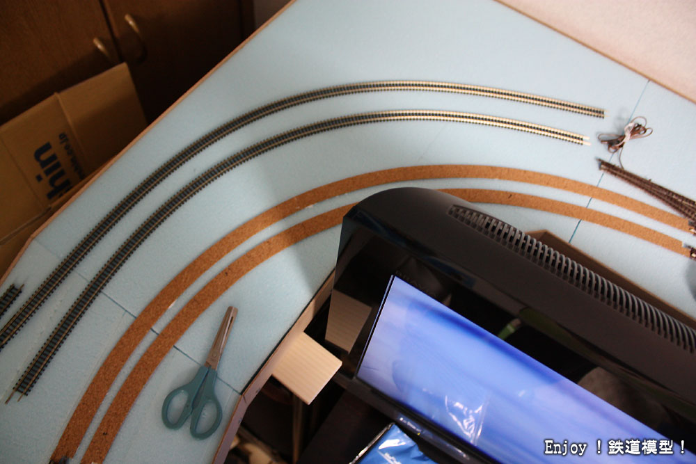 テレビの奥に回りこむカーブですが、ちょっとカーブ半径が小さくなったかなと思いますが、仕方がないですね。
