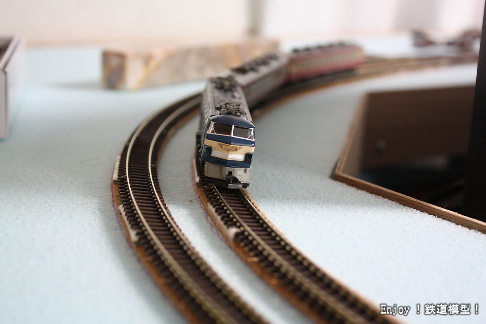 EF66初期製品での試走も問題なし。ただし、一周つながった時点でいろんな車輌でテスト走行をする必要があると思っています。特にカントの追従に問題がありそうな車輌でのチェックは必須です。