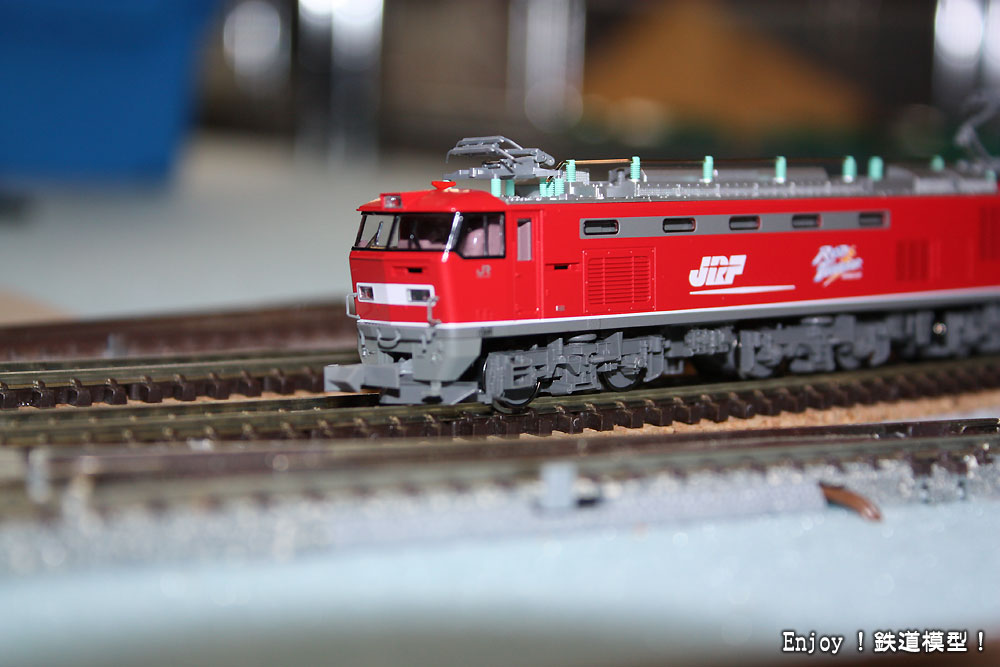 試走の編成としたのは、購入したばかりのクモニ83+115系800番台の9輌編成と、EF510+タキ23輌です。タキの内訳は、タキ1000が16輌、タキ43000が7輌です。今回は線路状態のチェックが目的ですので、実車編成にこだわらず、それらしくでまとめた編成となっています。115系は、中間運転台のヘッドライトとテールライトが点灯していますが、気にしないでください。